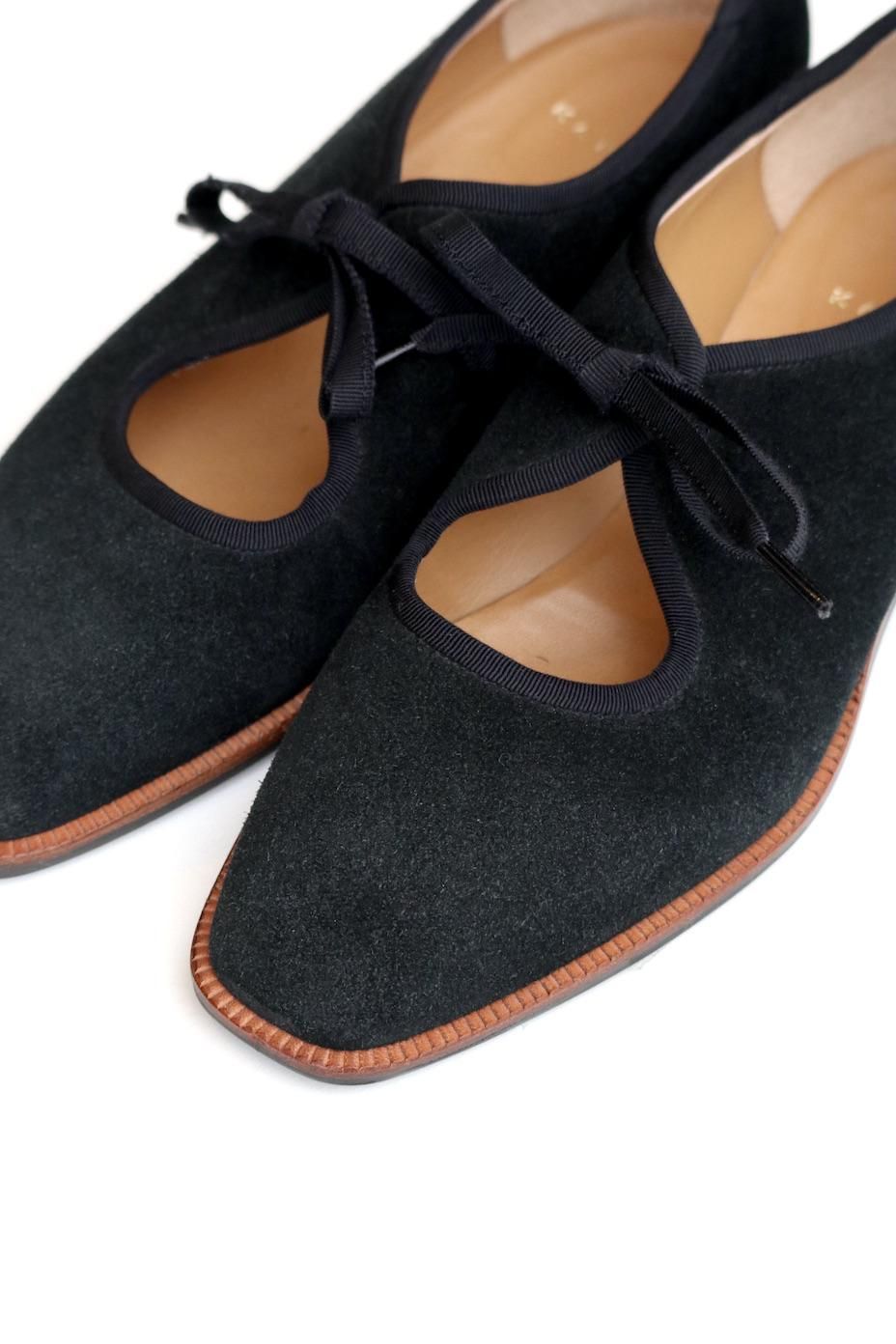 スクエアトウにすることでカジュアルになりすぎない印象に。