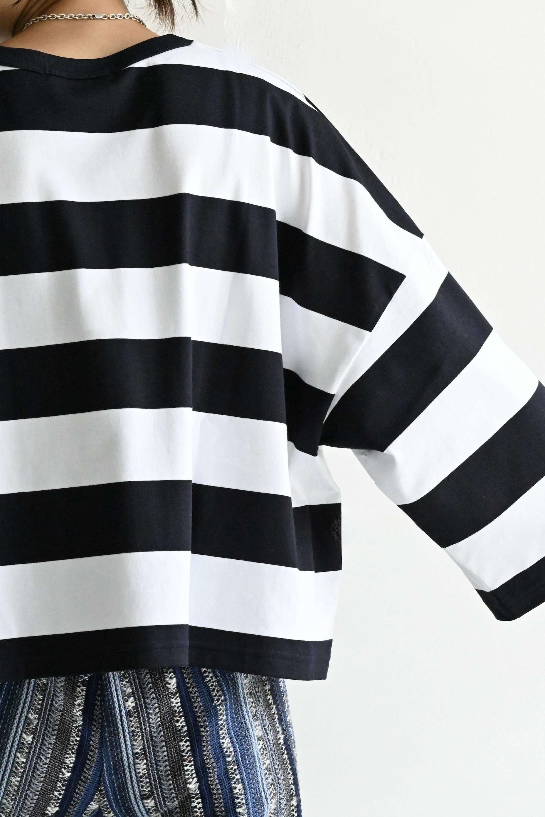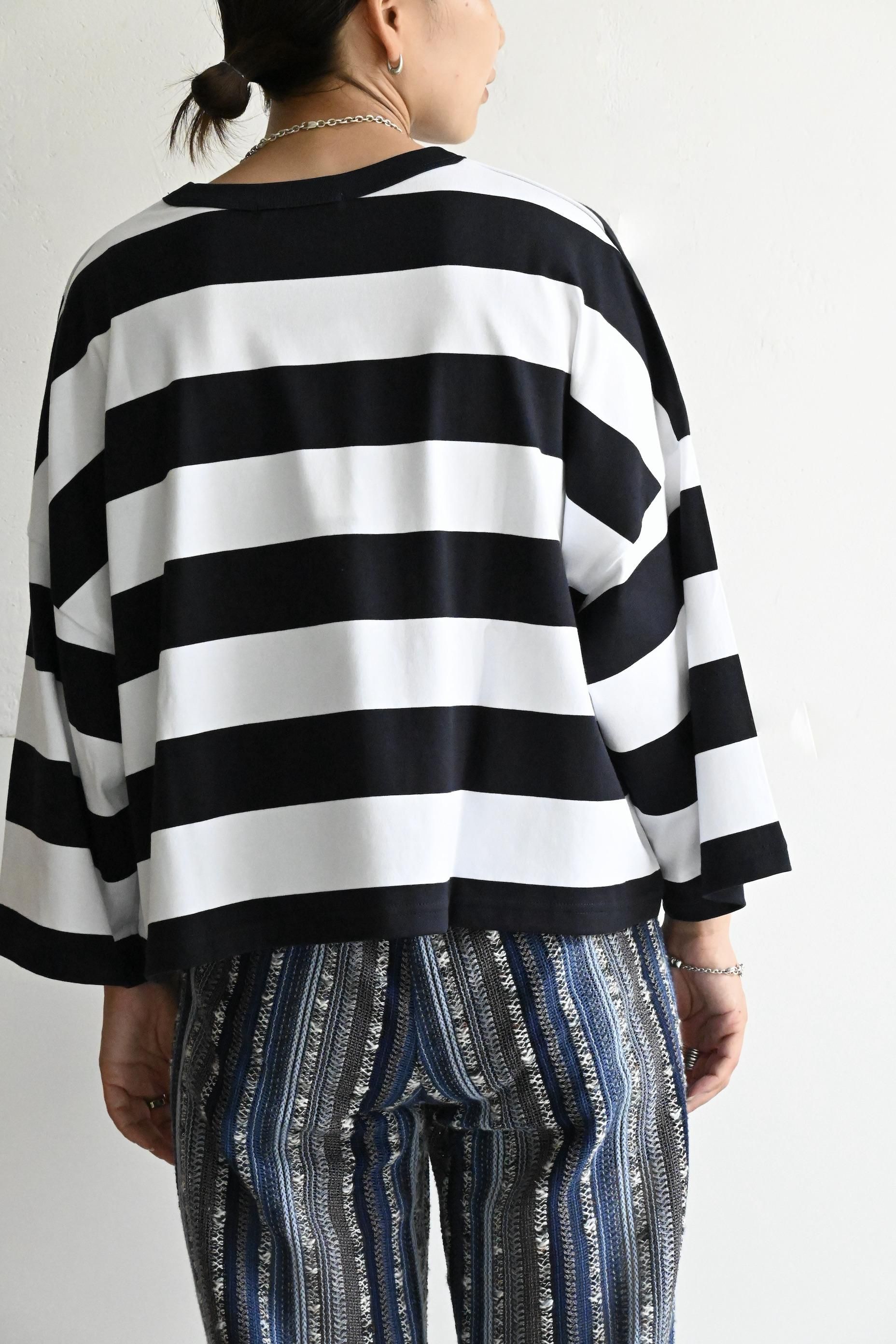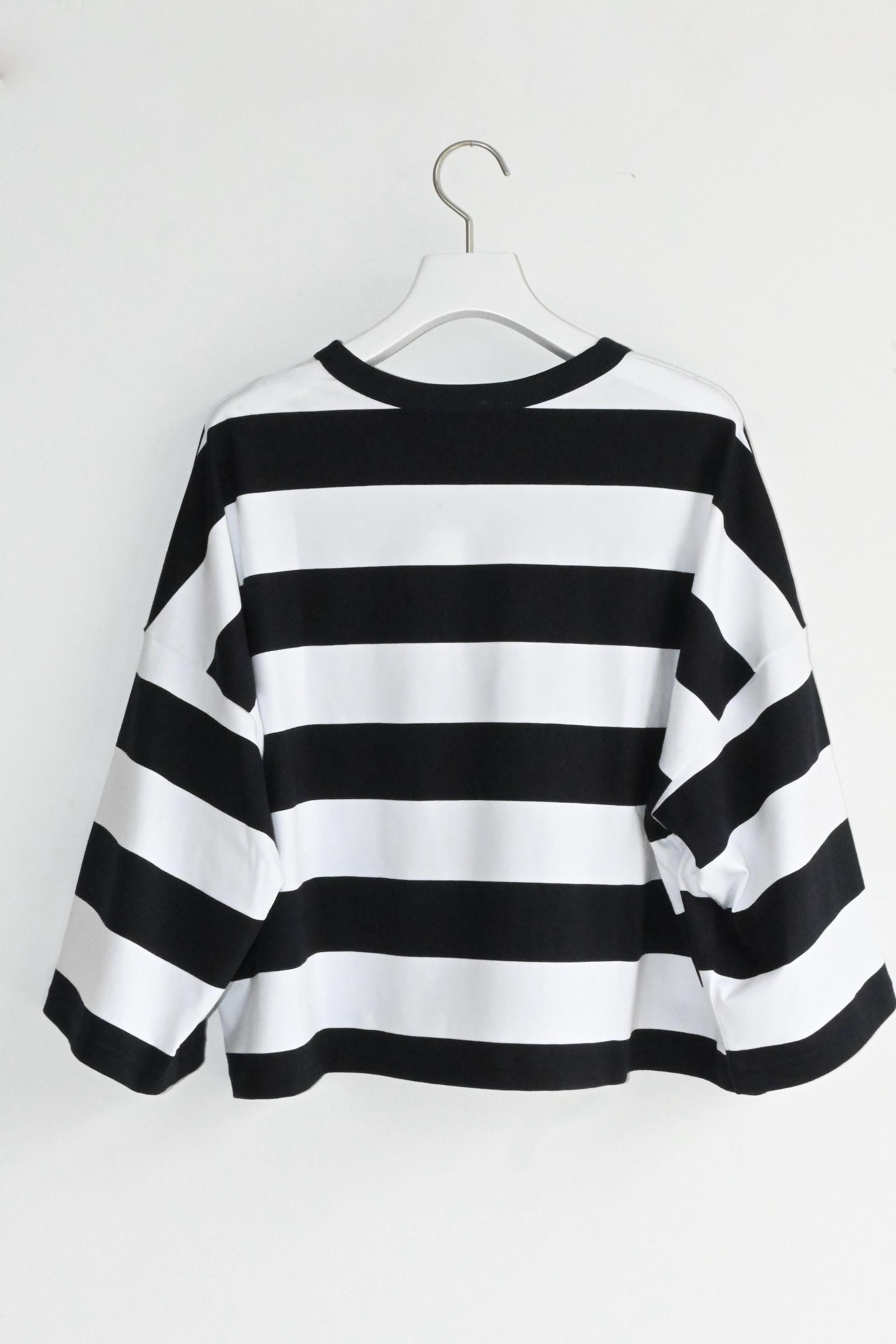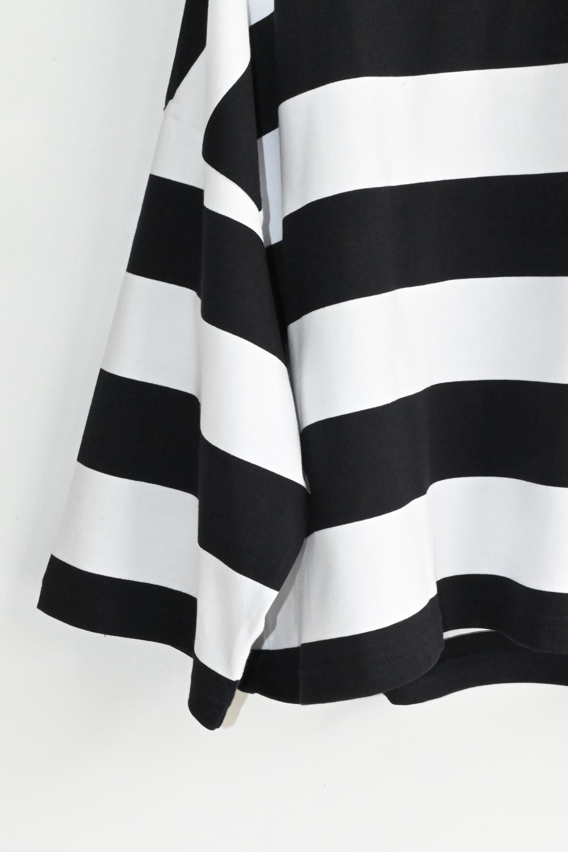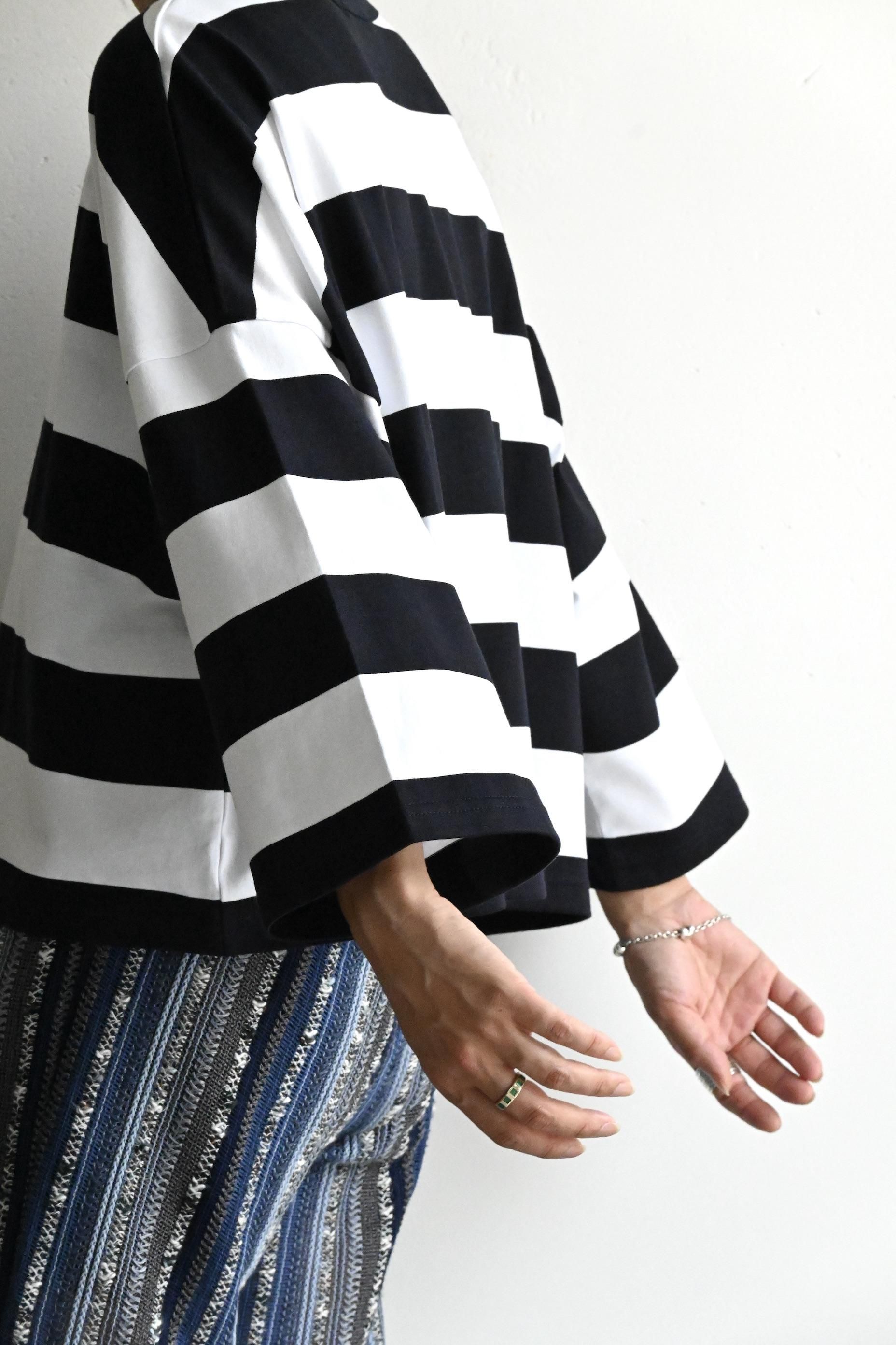 ワイドスリーブ、ややコンパクトな着丈のバランスが新鮮な一枚。