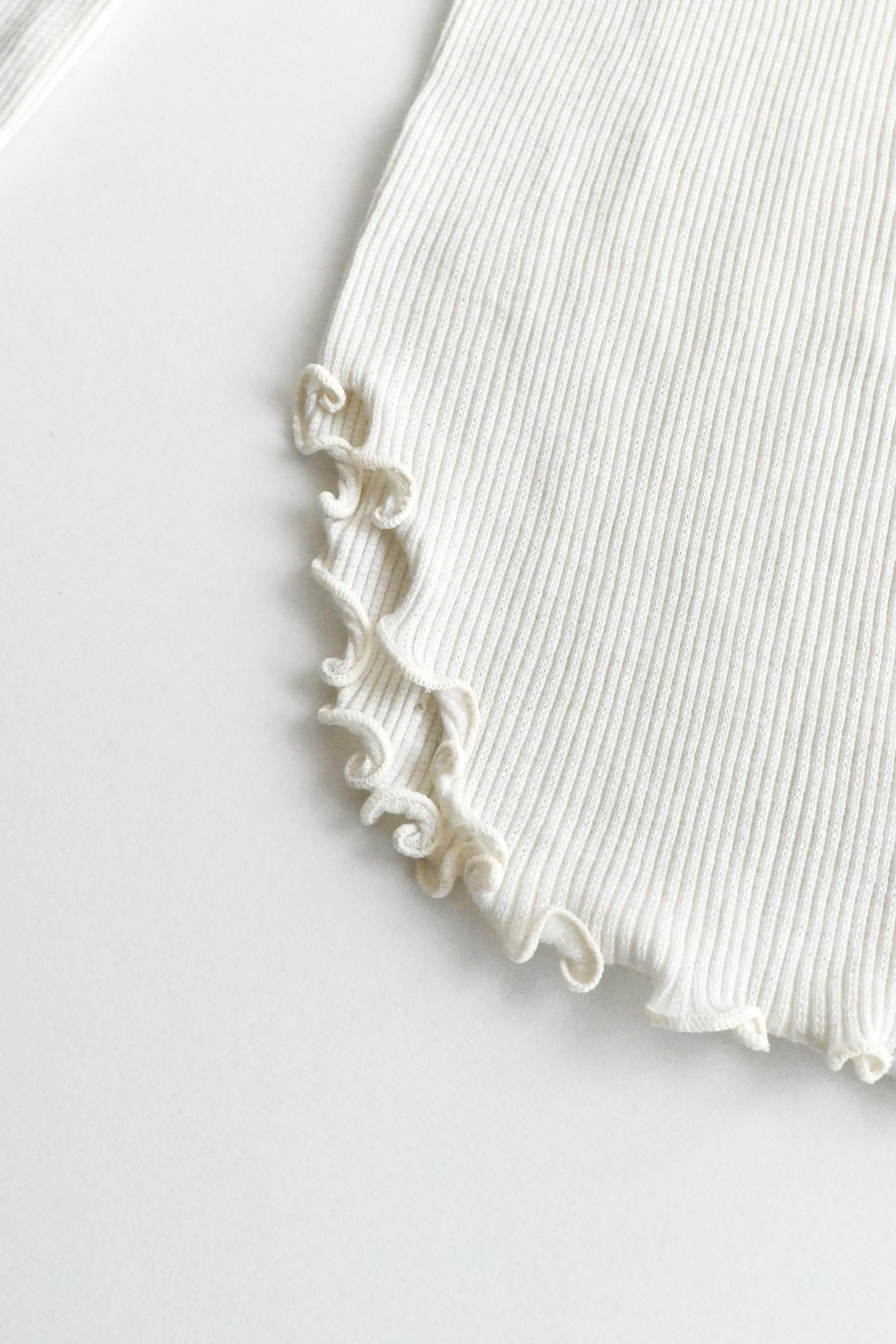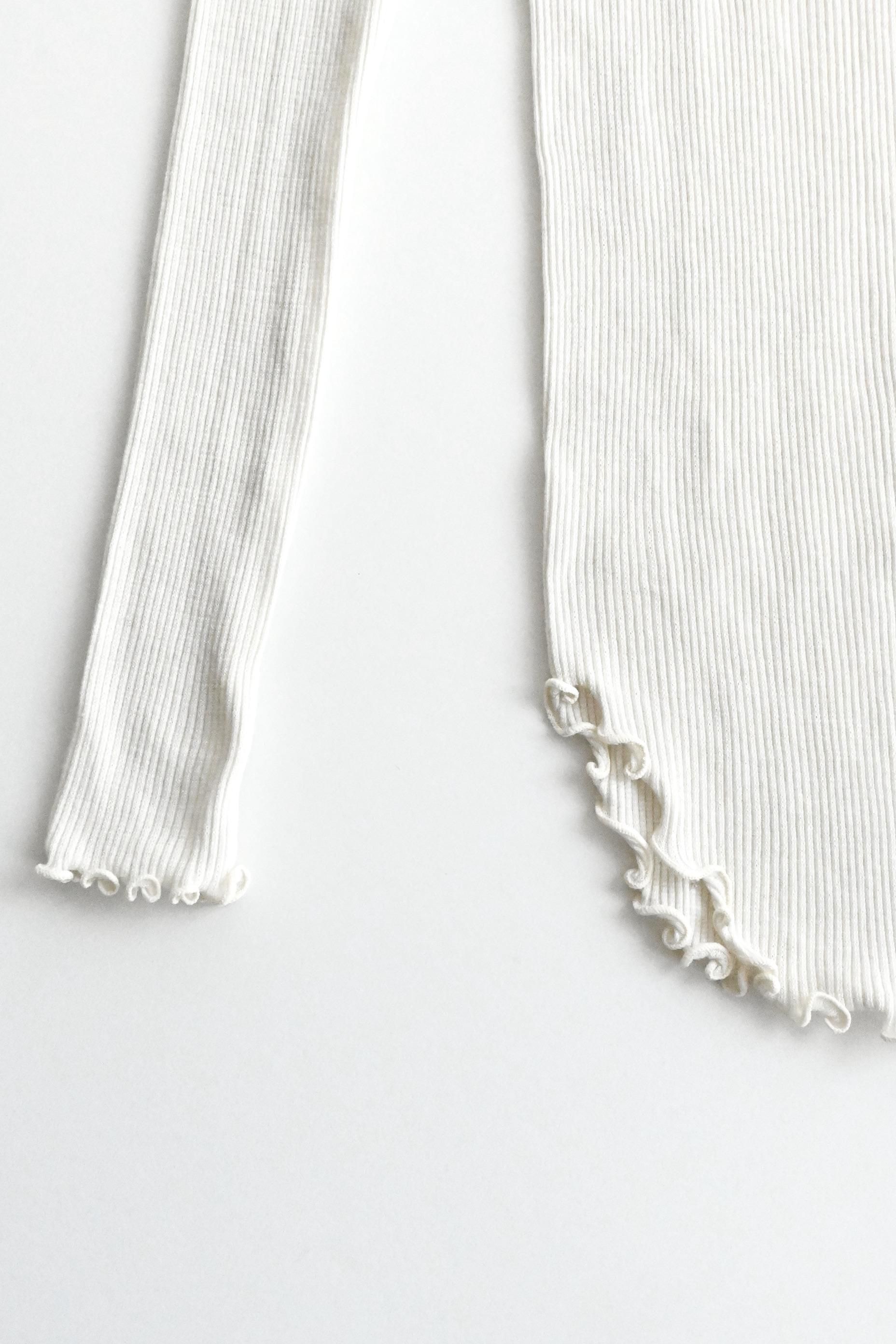 重ねたトップスの袖口から覗かせるレイヤードスタイルを楽しめるデザイン。