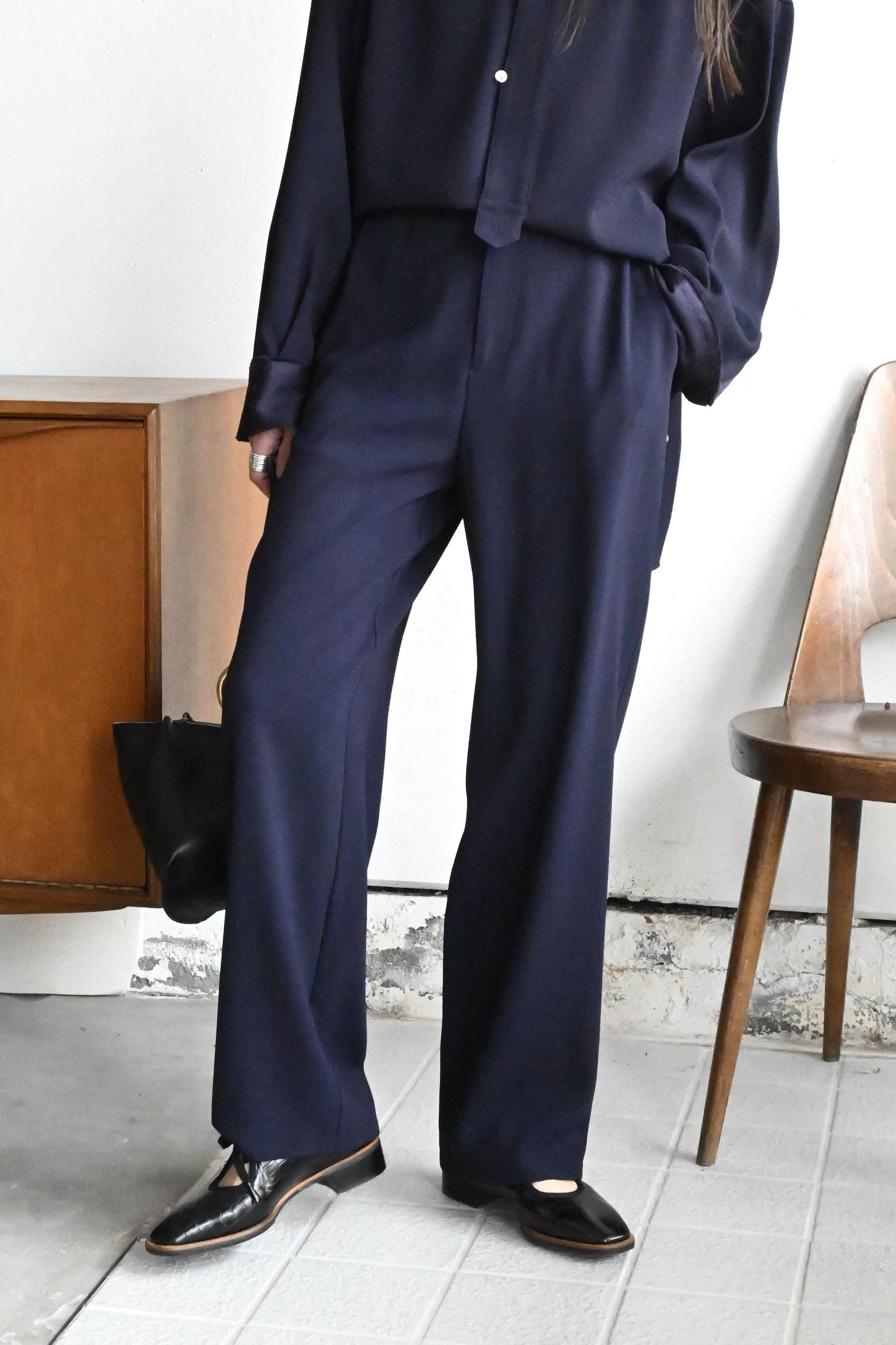 シワにならない素材感が特徴のバックサテンアムンゼンを使用したイージーパンツ。