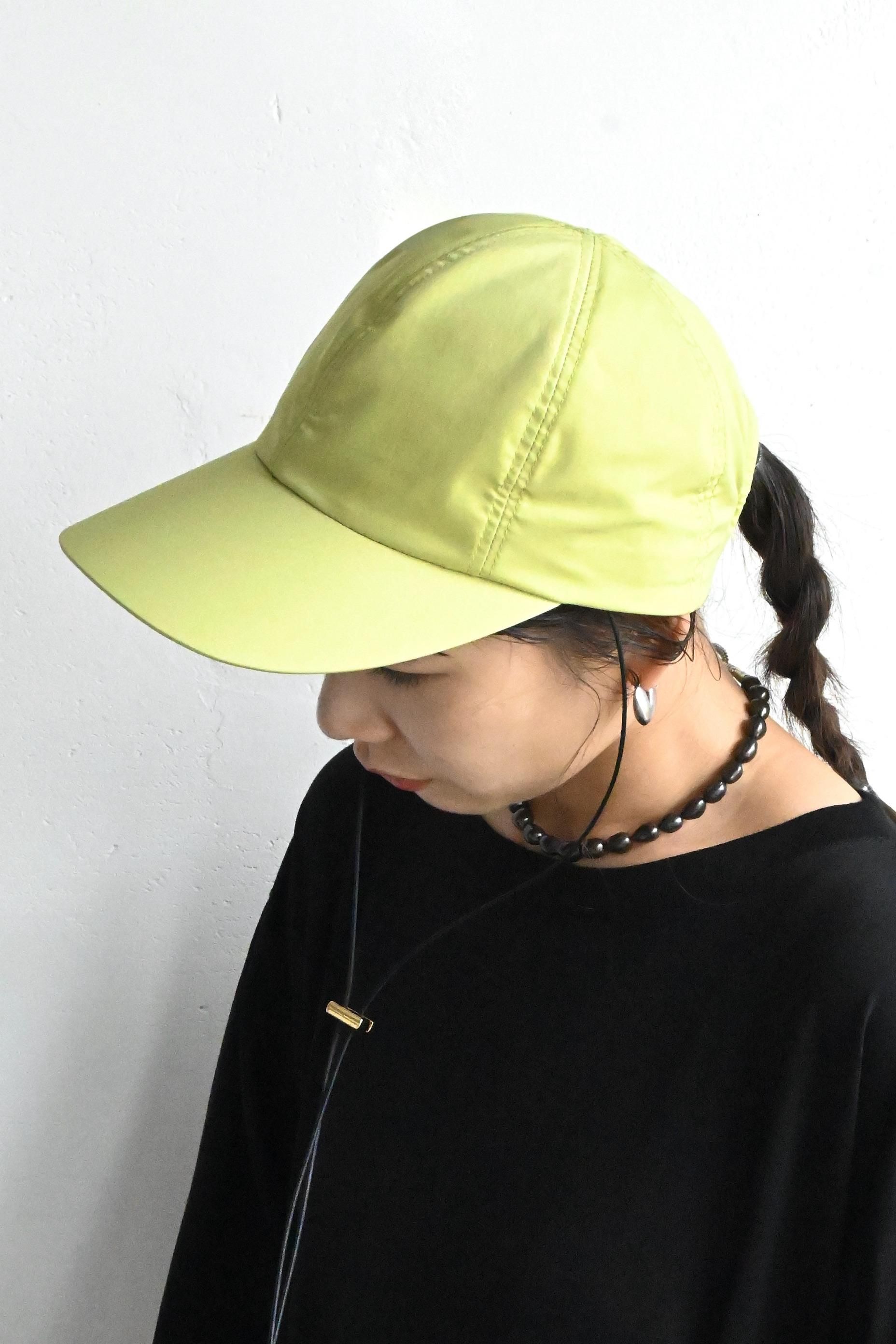 光沢感が程良く上品で、撥水加工を施した生地を使用したキャップ。