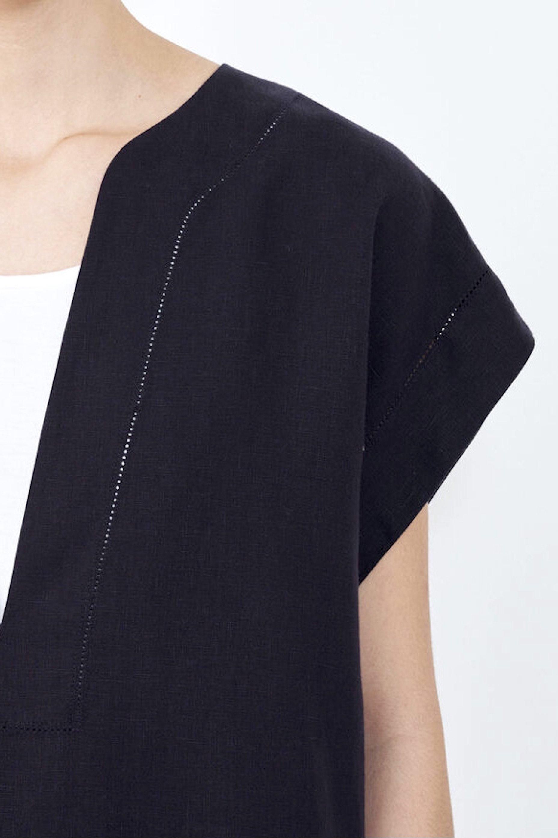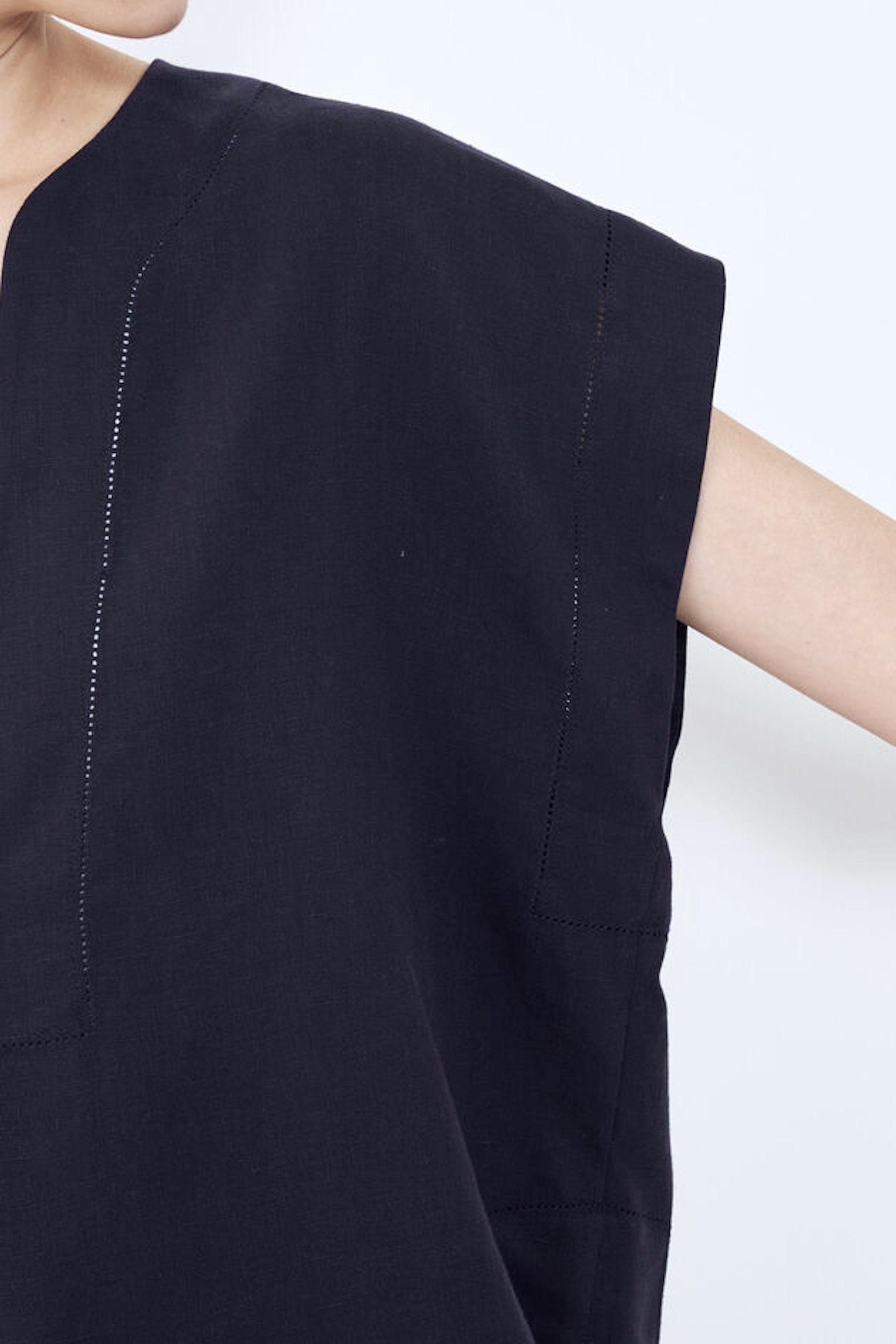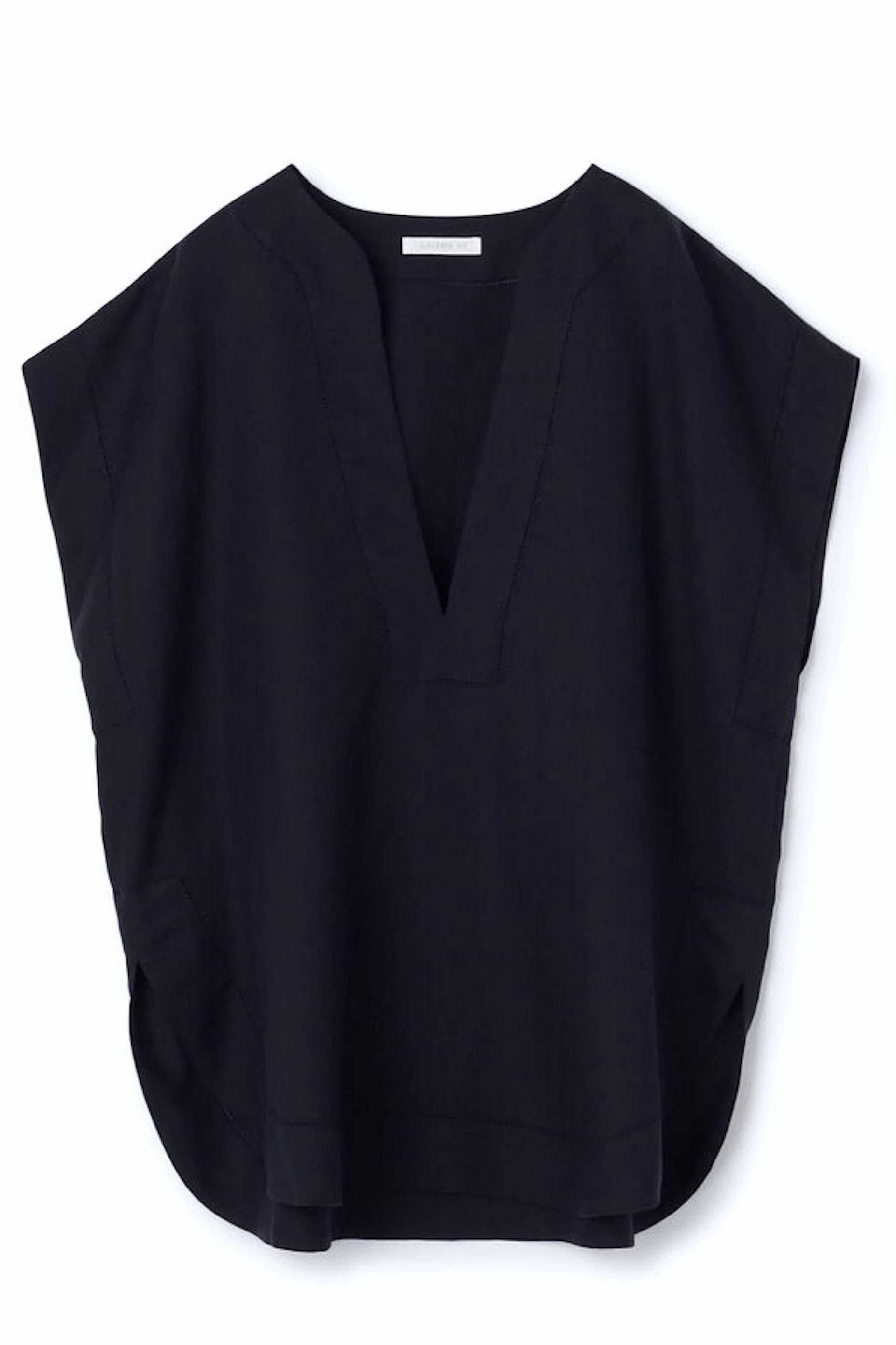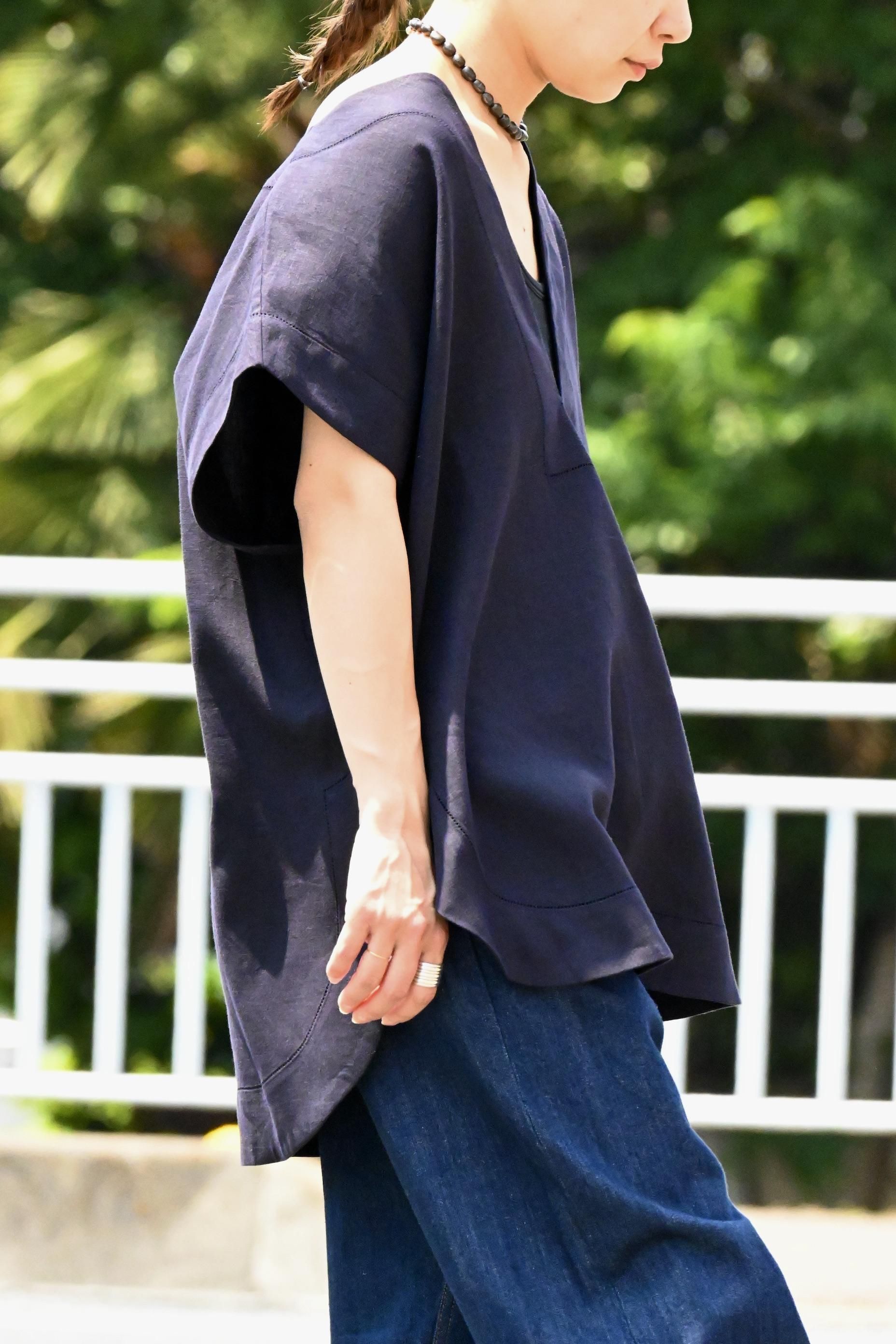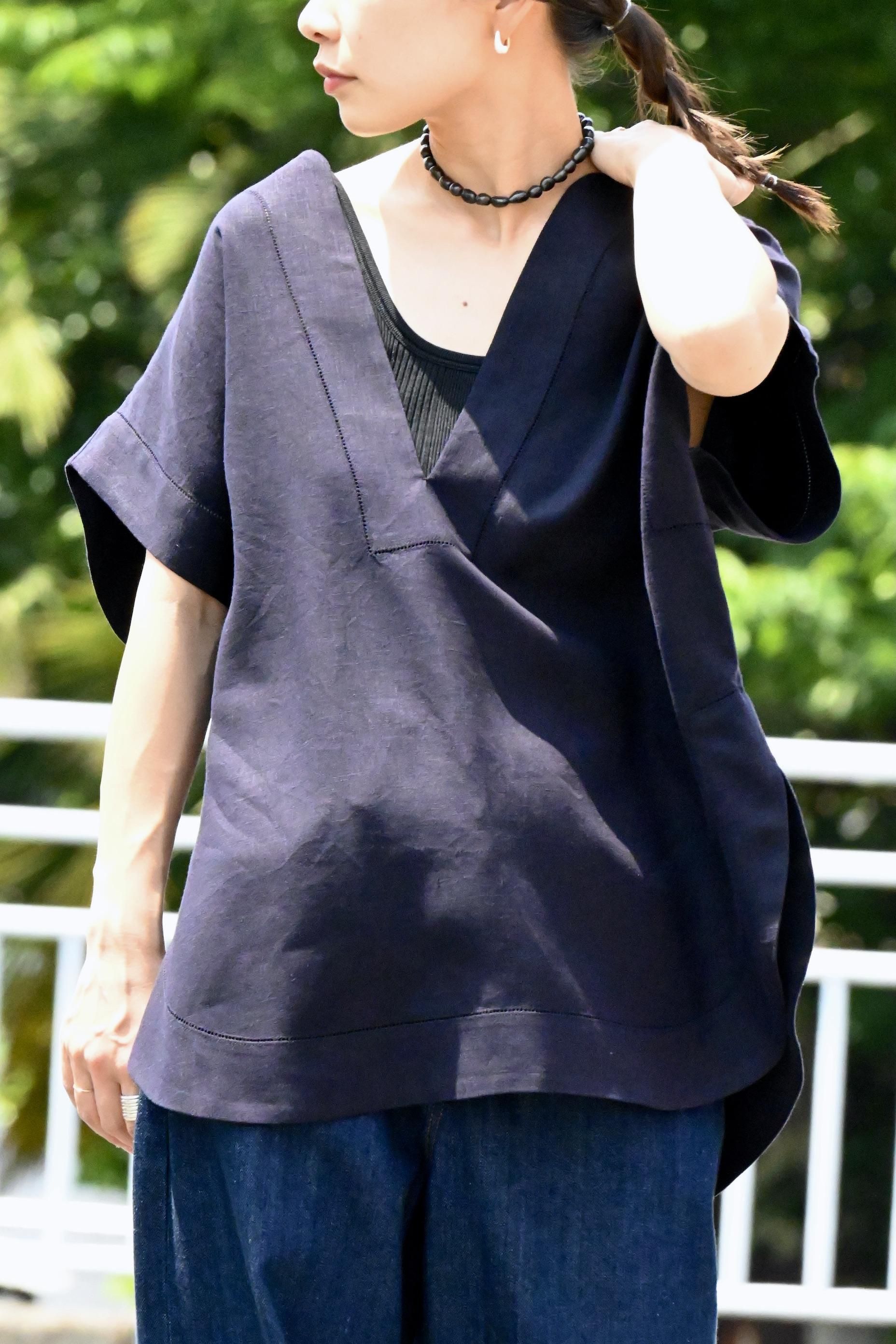 カフタンデザインのブラウスはゆったりとしたサイズ感に