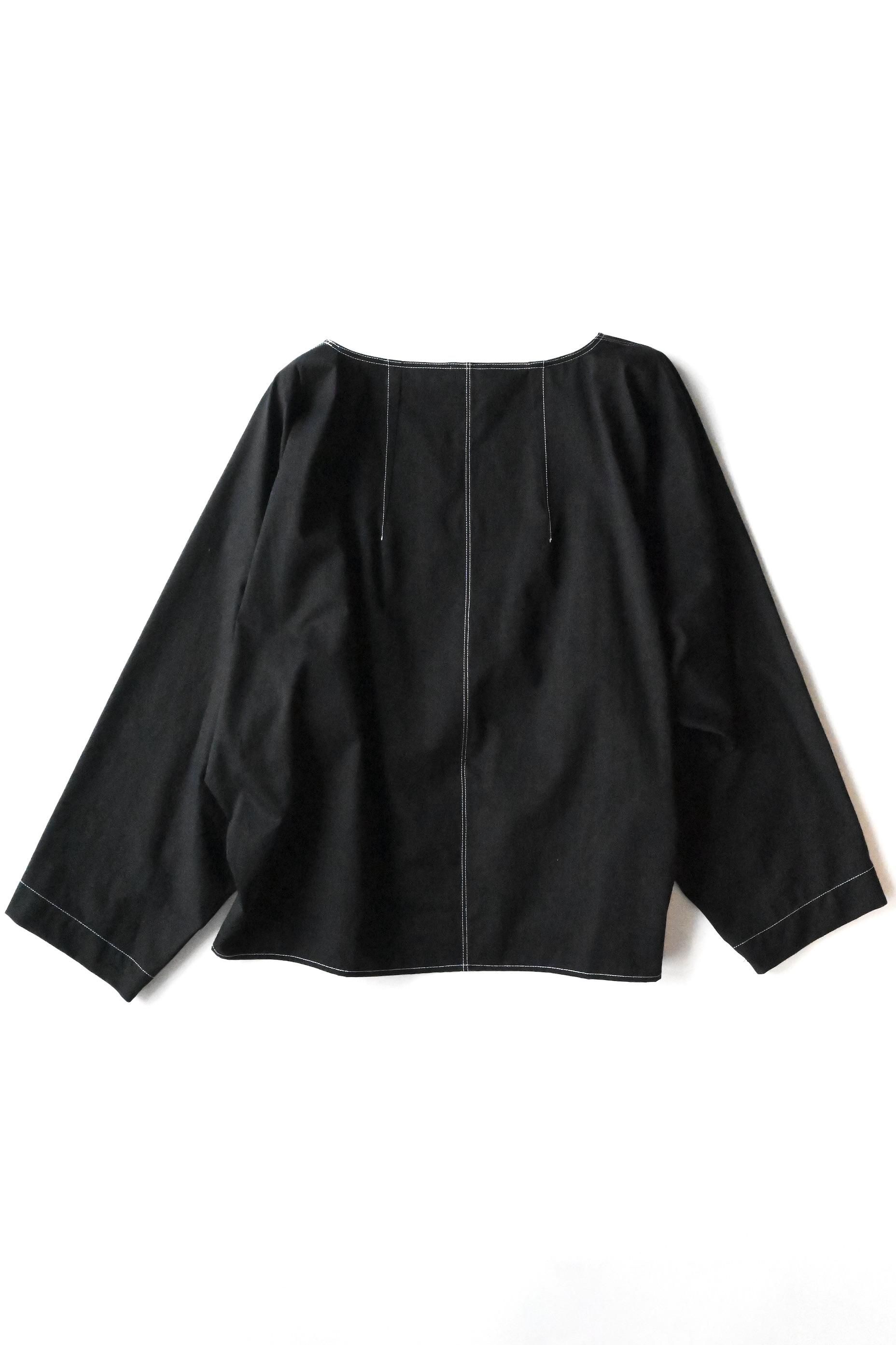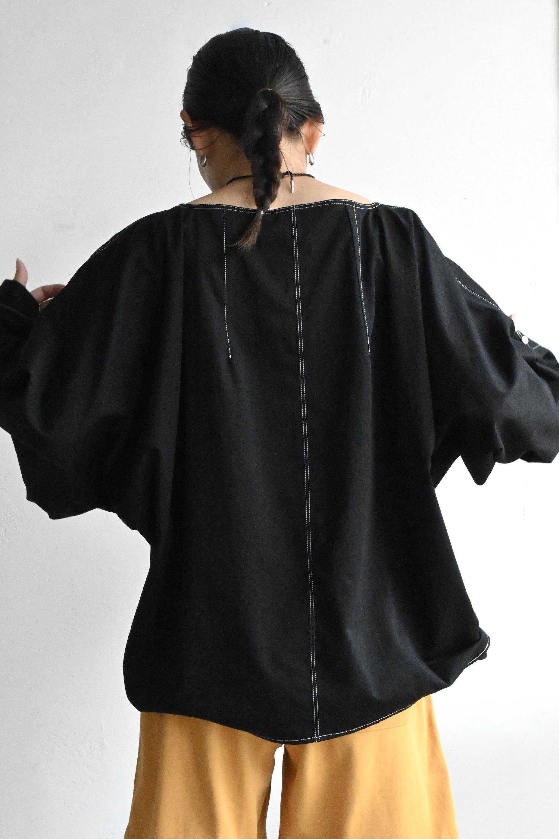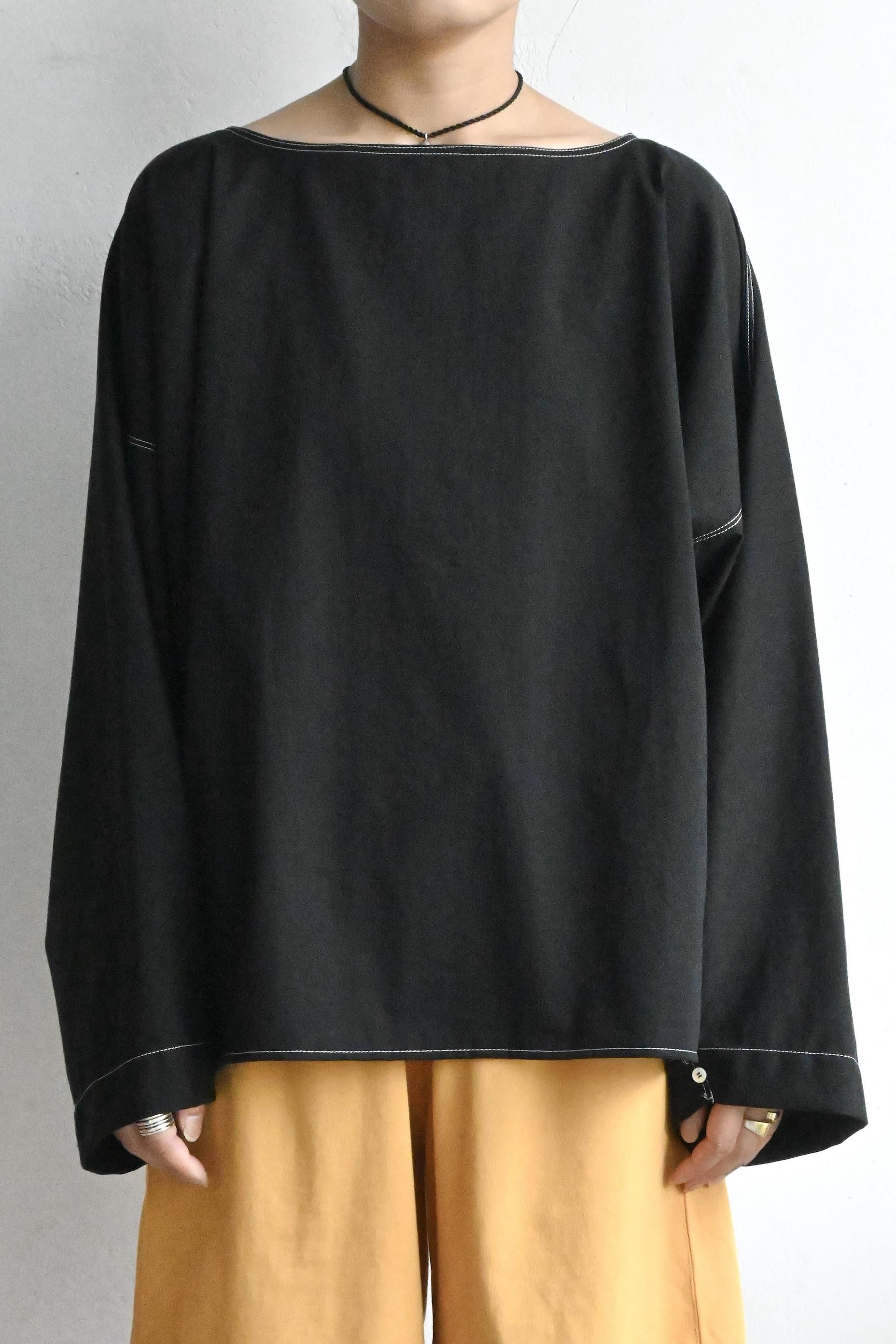 配色ステッチのカラーがポイントのボートネックプルオーバー。