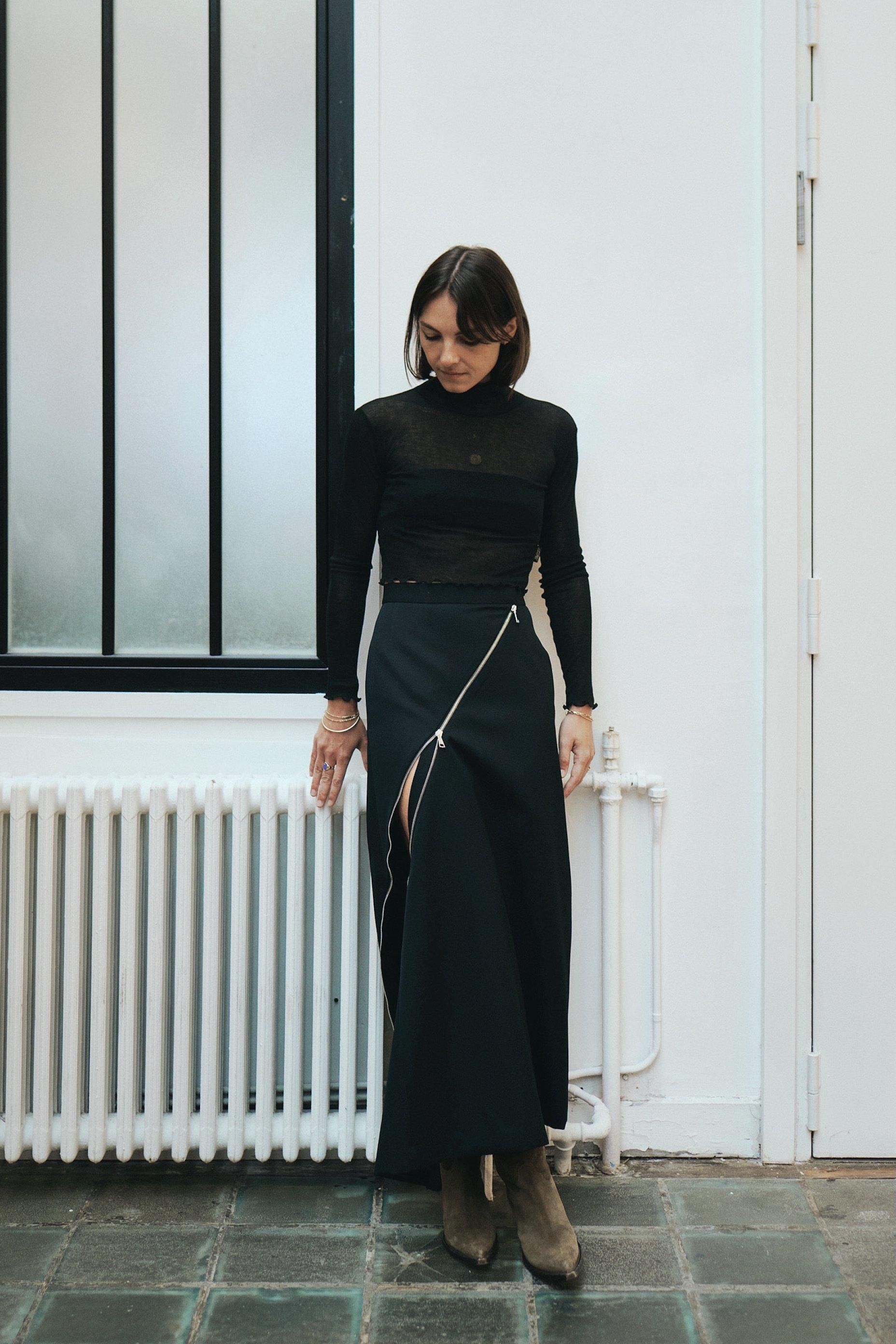 真面目になりがちなウールのロングスカートにタフさを与える。
