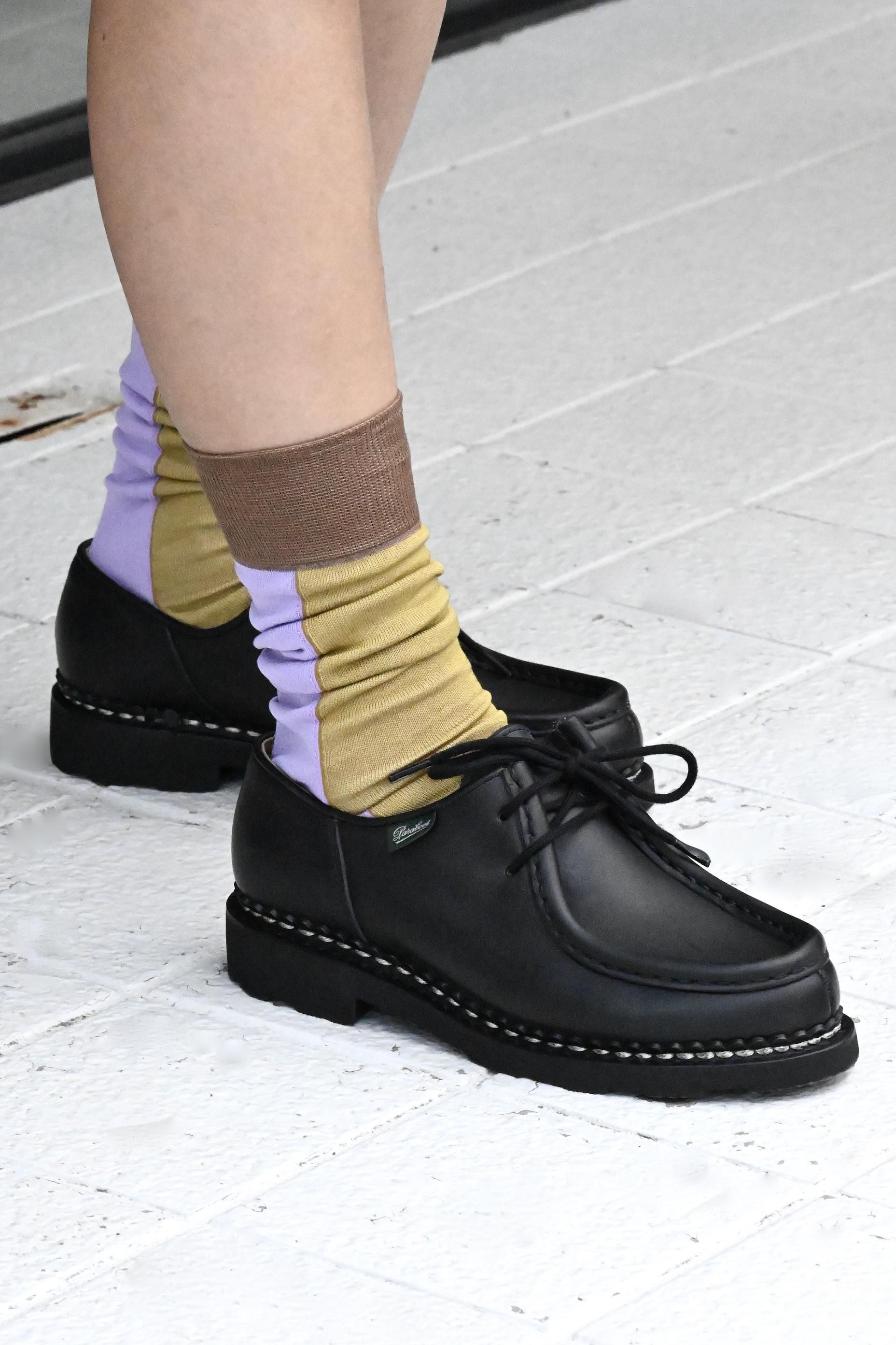 スタイリングのキーとなる靴下にスポットを当てよう。