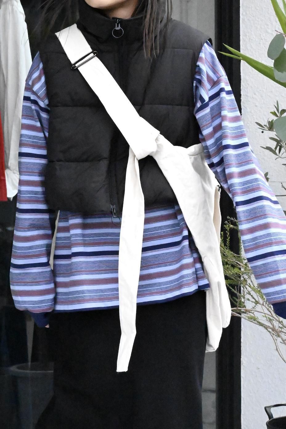 あえて長く取られた肩ベルトがデザインポイントにもなっています。