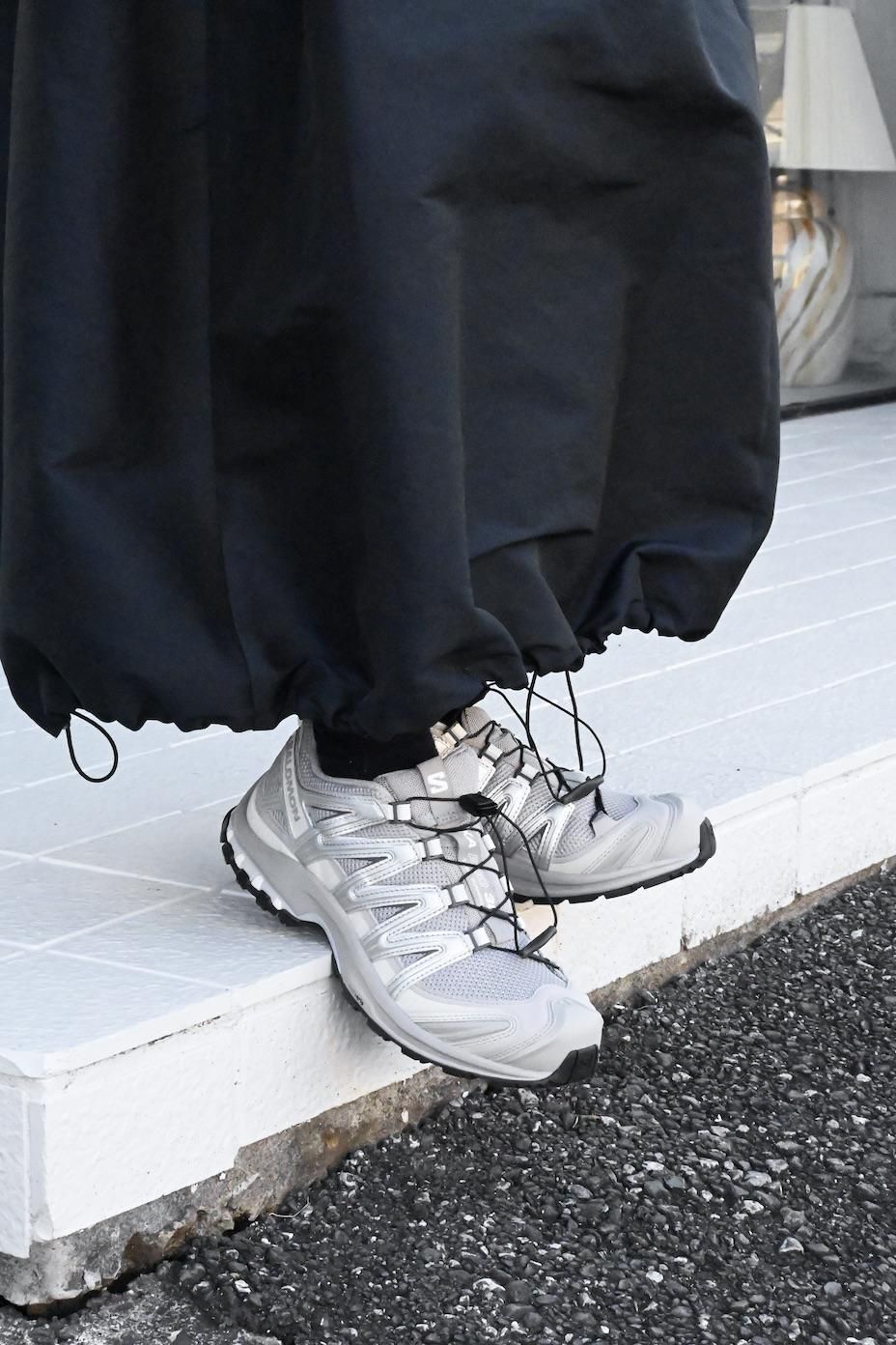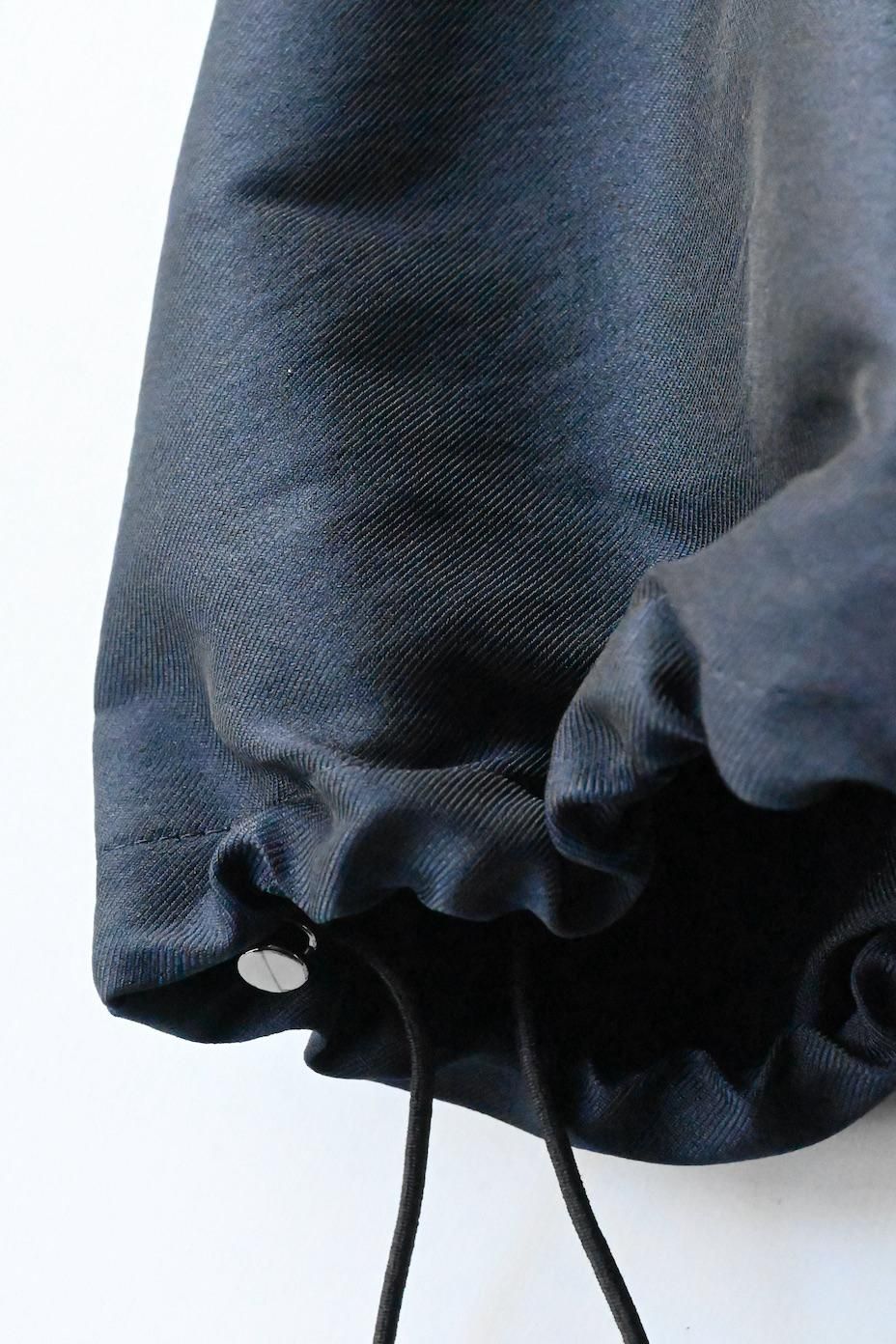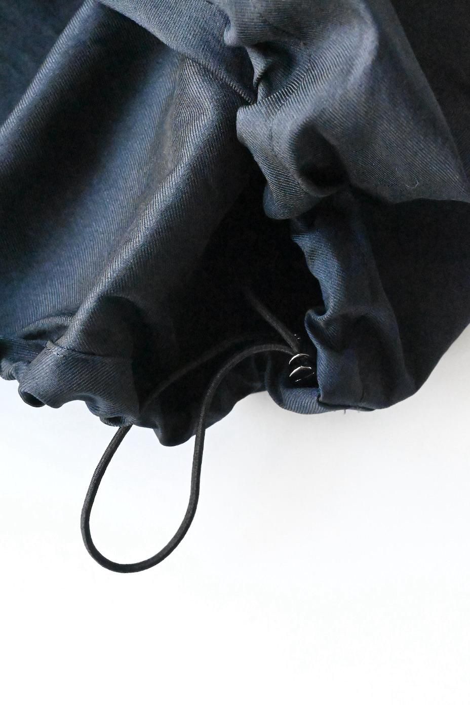 裾部分に配したドローストリングの絞り具合でシルエットをアレンジしたり、