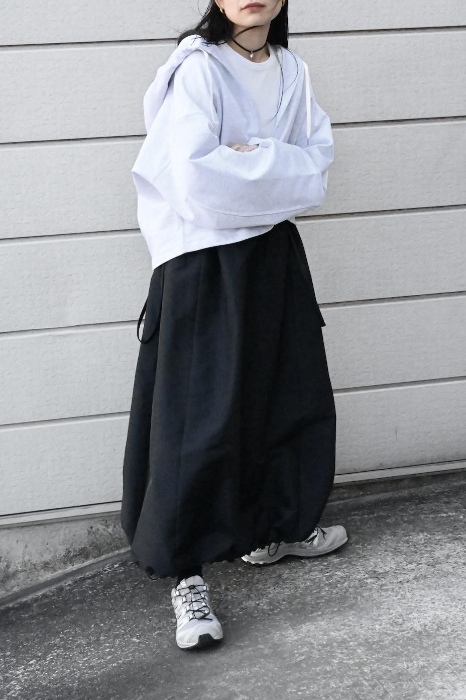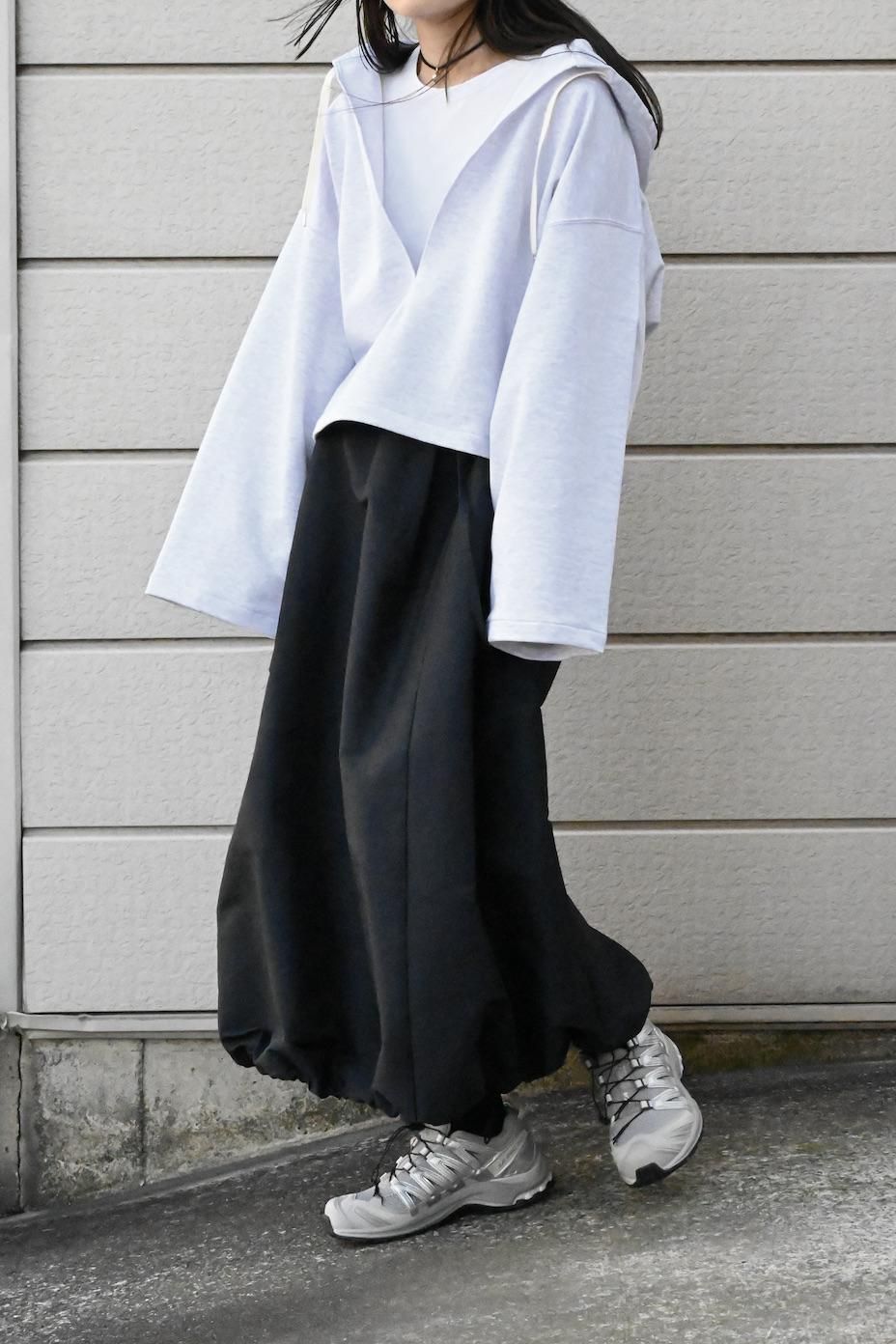 スカートは裾まわりの立体的なバルーンフォルムが目を惹くポイント。