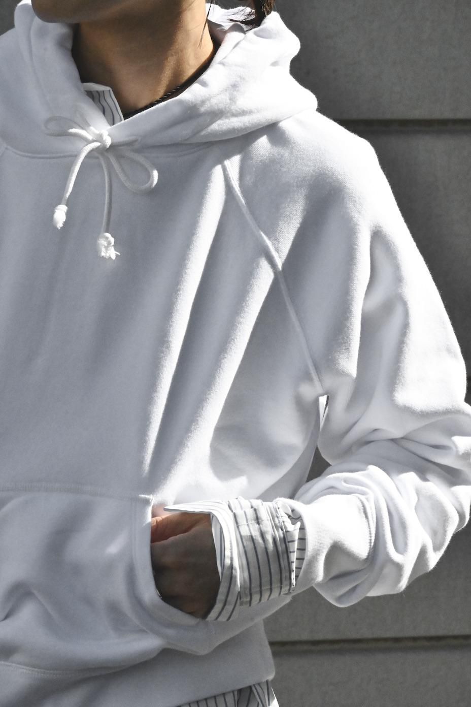 フーデッドプルオーバーは大きめなフードとボディ・スリーブともにゆとりを持たせたシルエットで抜け感があり、スタイリングに旬な雰囲気をプラスしてくれる一着です。