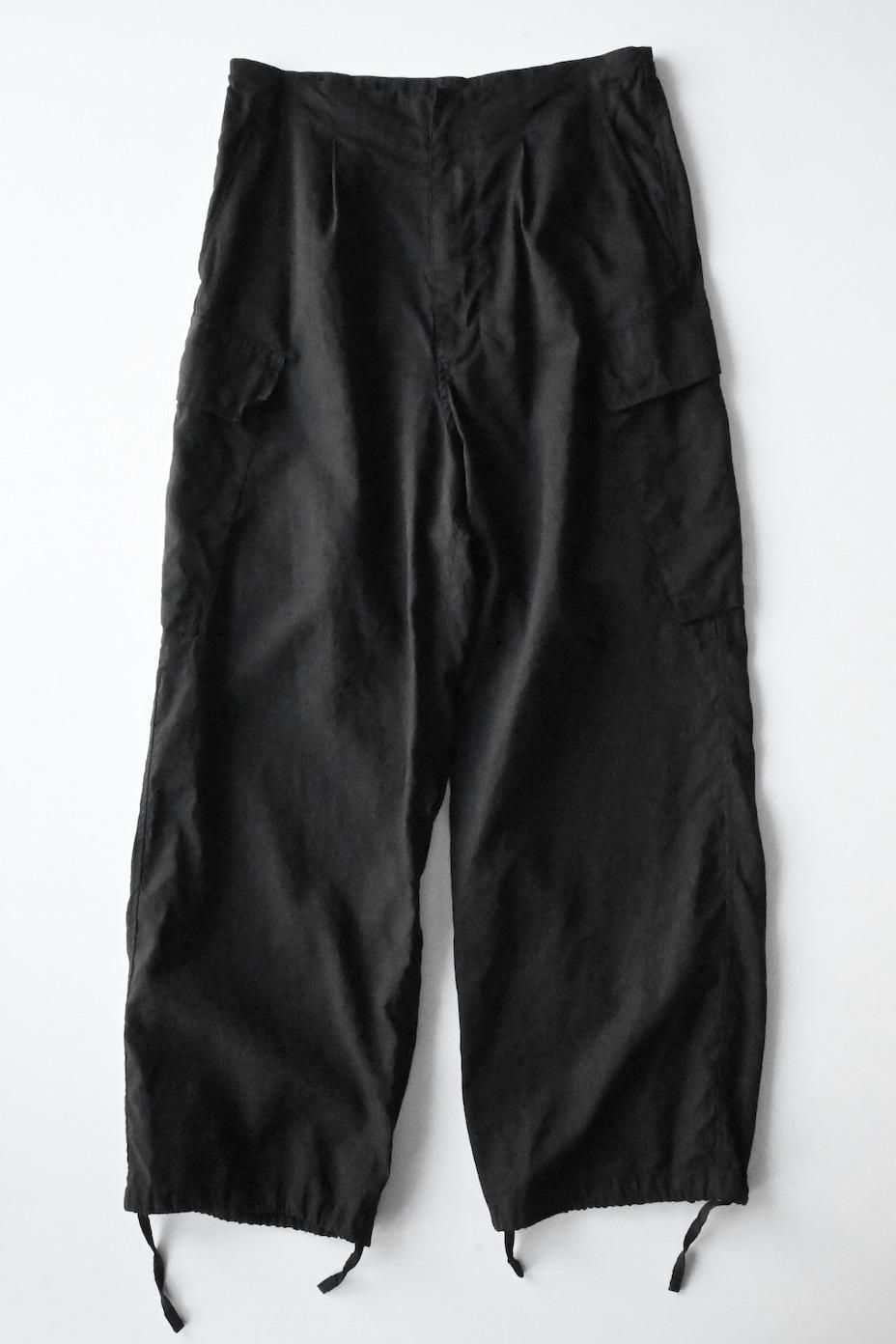 太めのカーゴパンツですが、ウエストは腰回りをスッキリさせています。