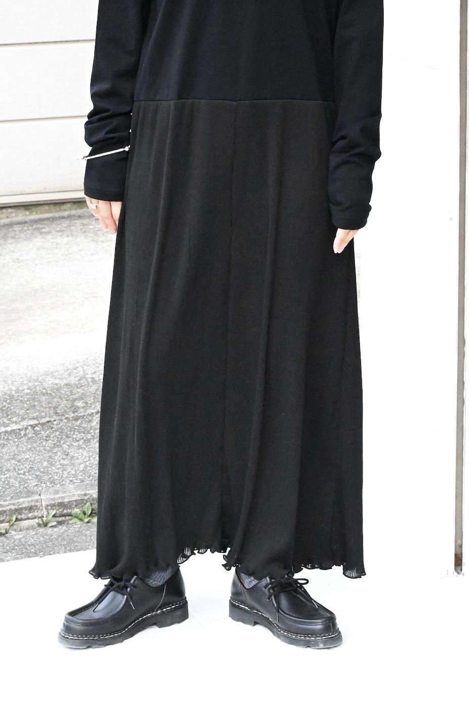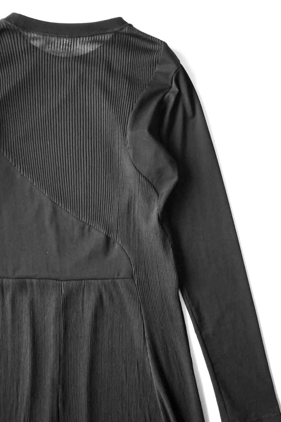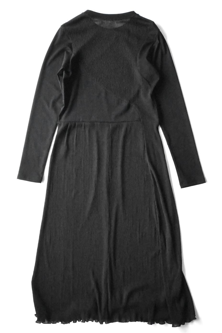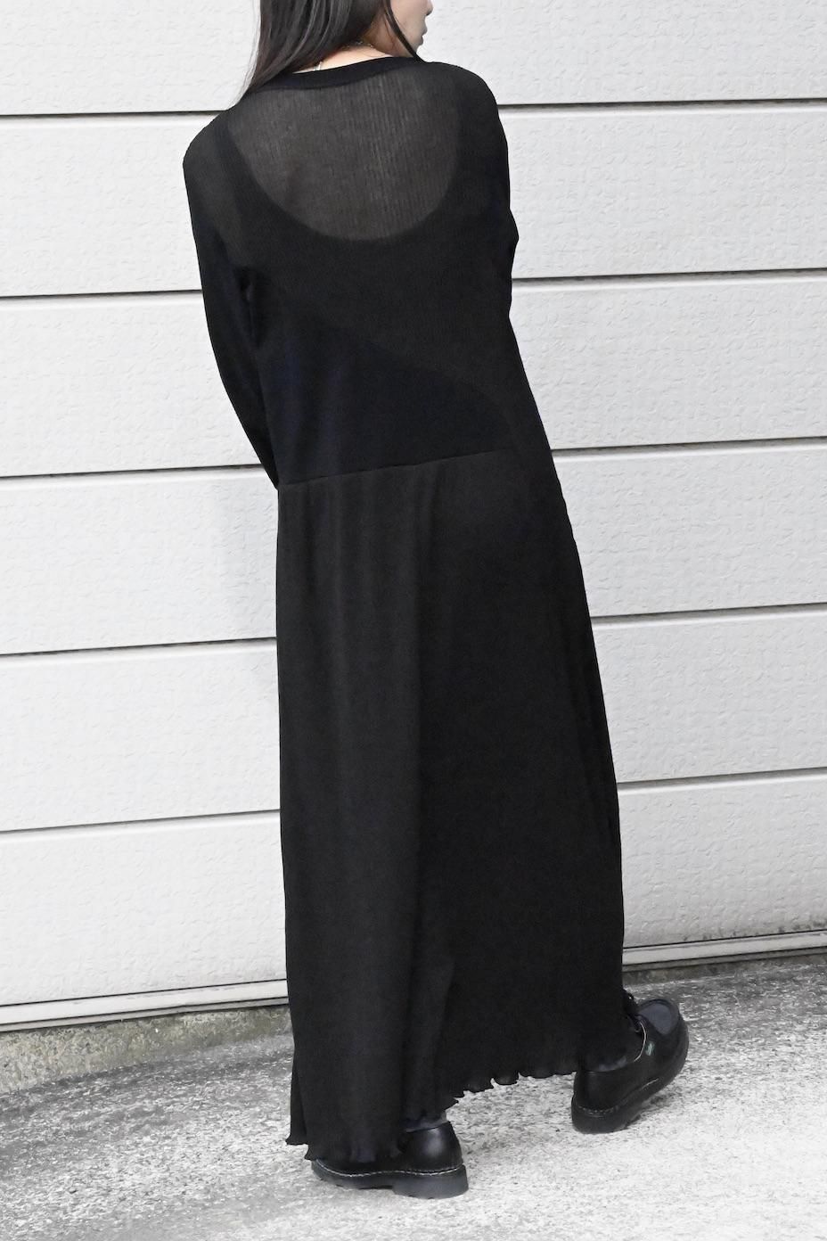 後身頃の一部とスカート部分はテレコ(透け感のあるリブ組織)で構成。