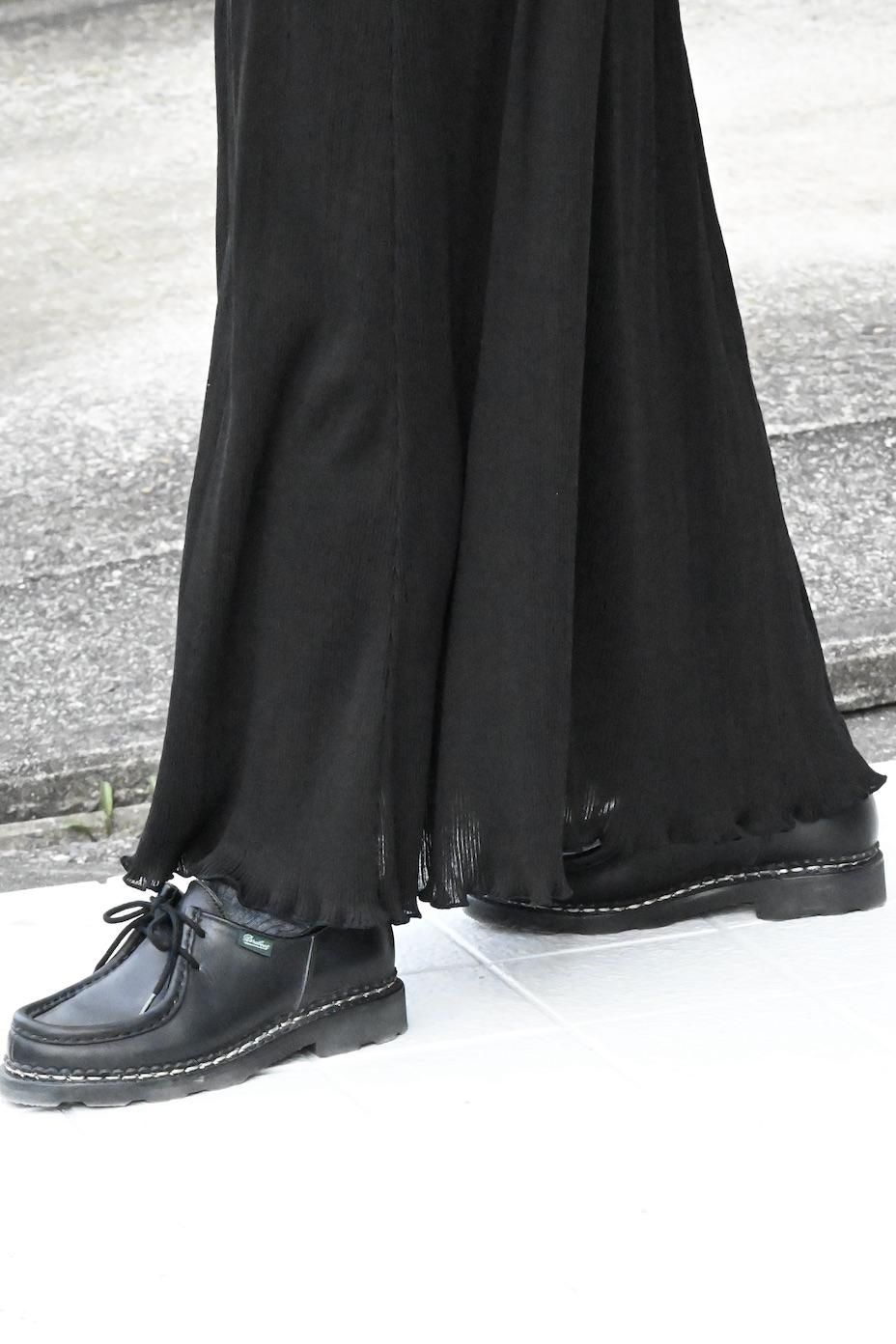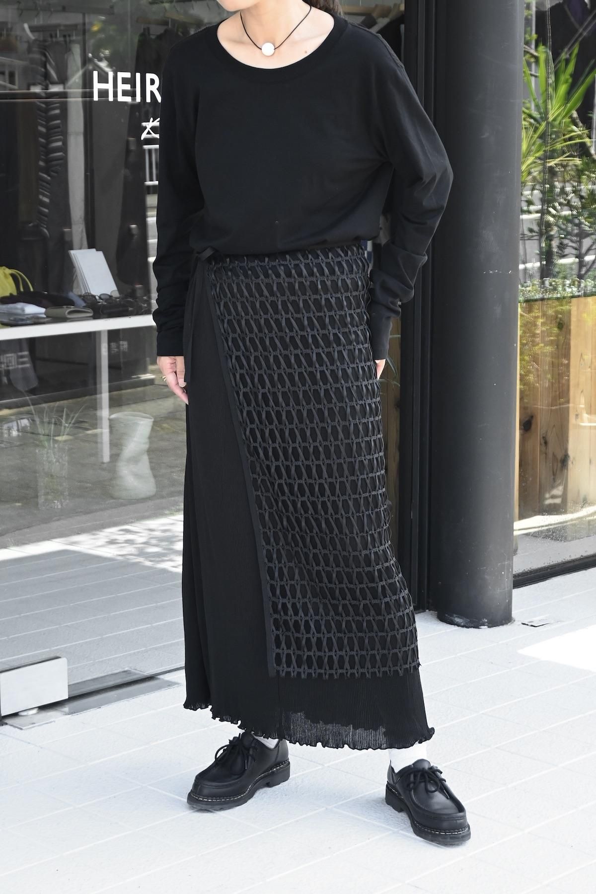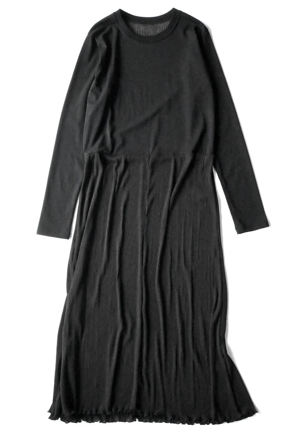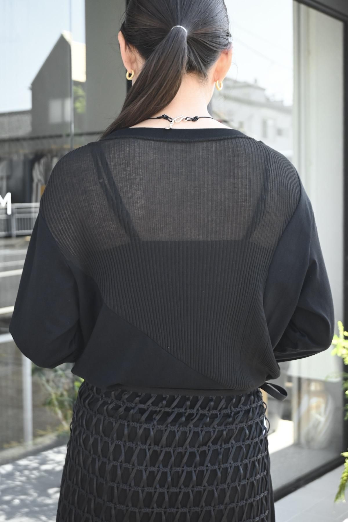 後身頃の一部とスカート部分はテレコ(透け感のあるリブ組織)で構成。