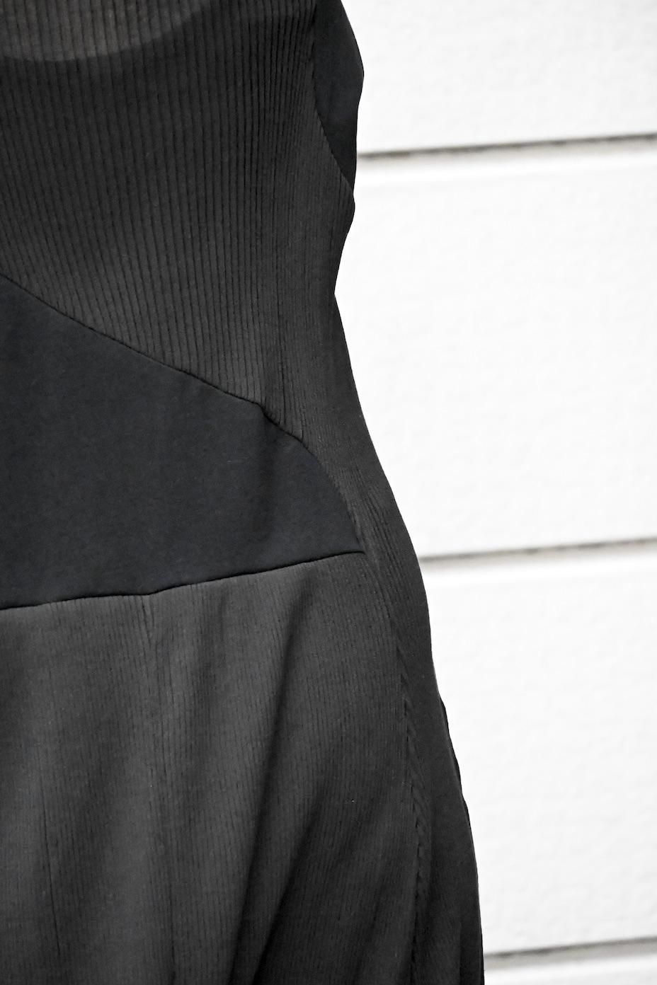 組織の異なるジャージー素材の切り替えがデザインポイントのドレス。