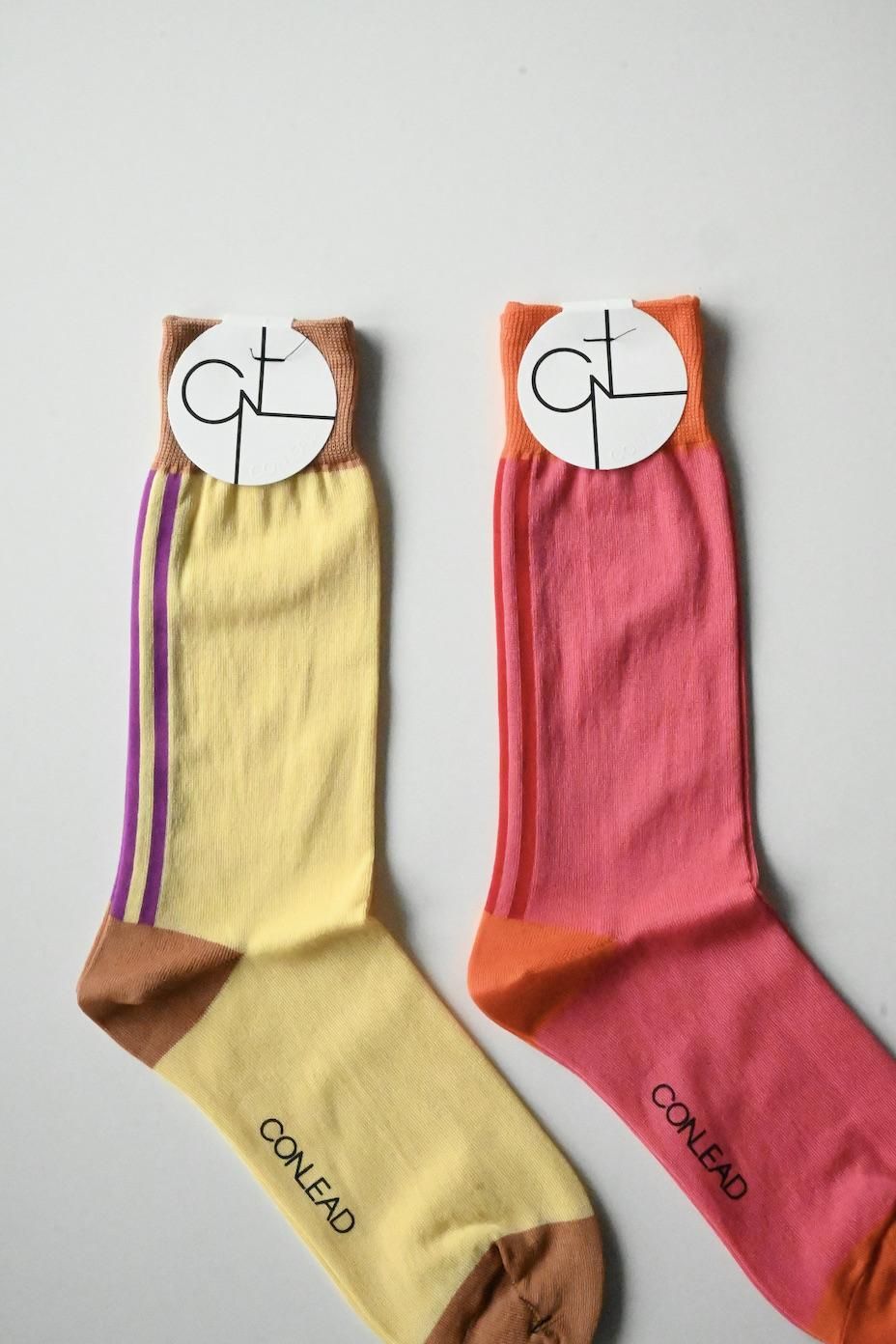 スタイリングのキーとなる靴下にスポットを当てよう。