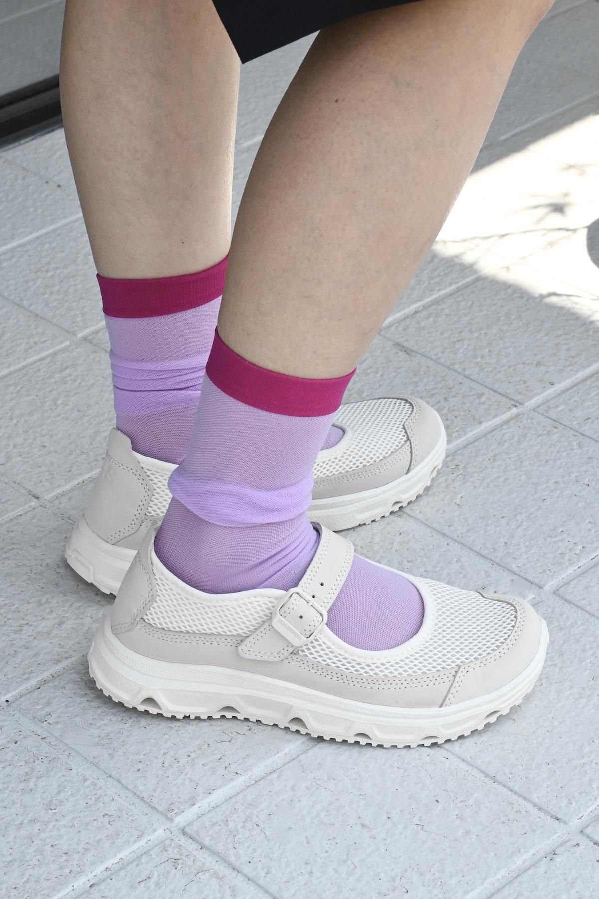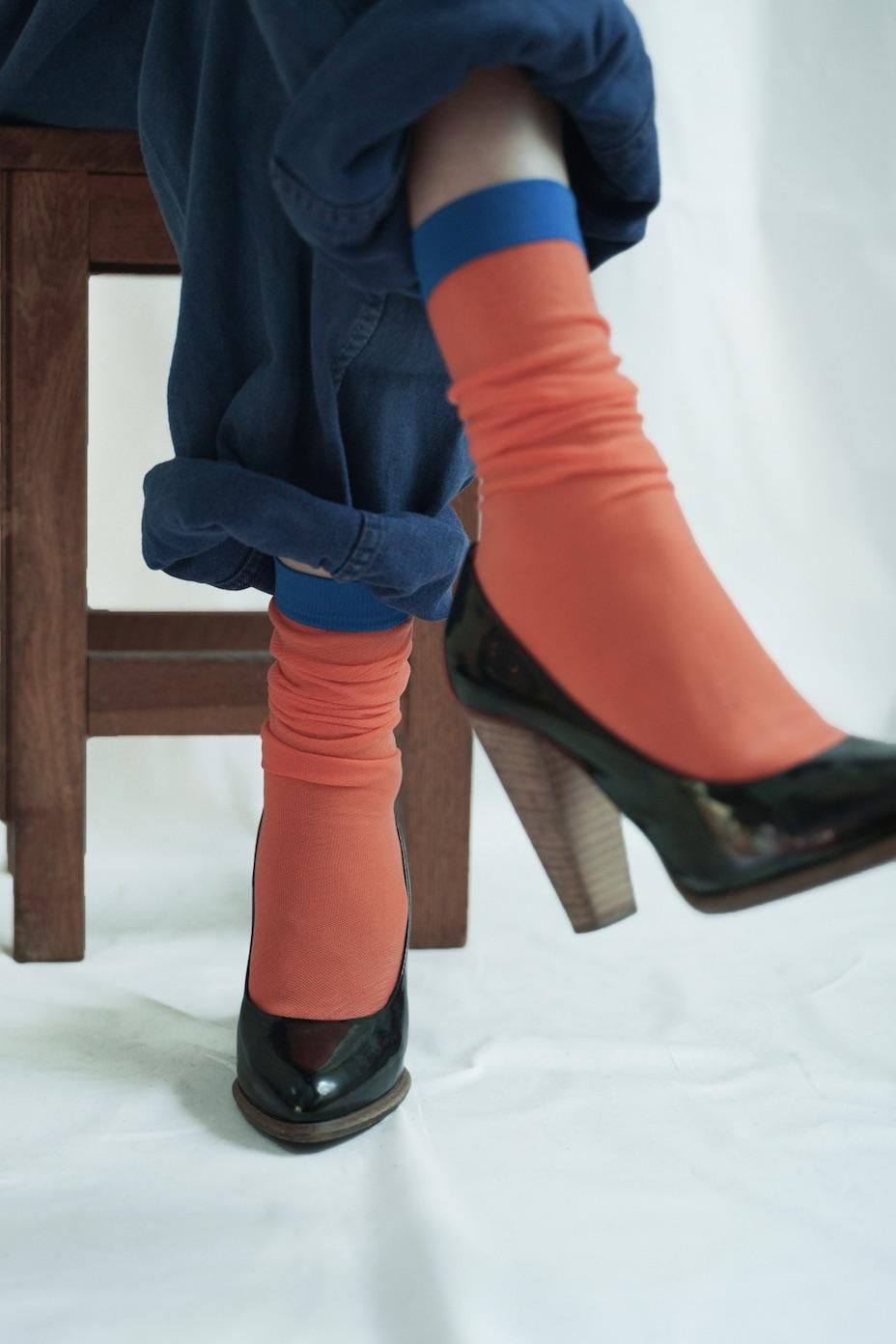 スタイリングのキーとなる靴下にスポットを当てよう。