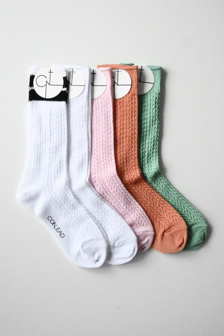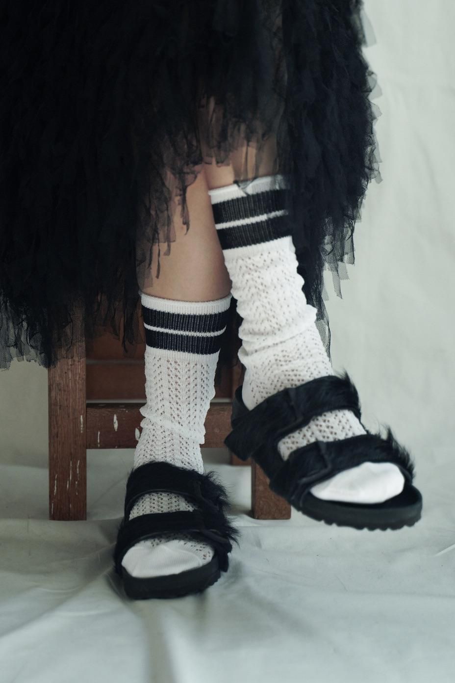 スタイリングのキーとなる靴下にスポットを当てよう。