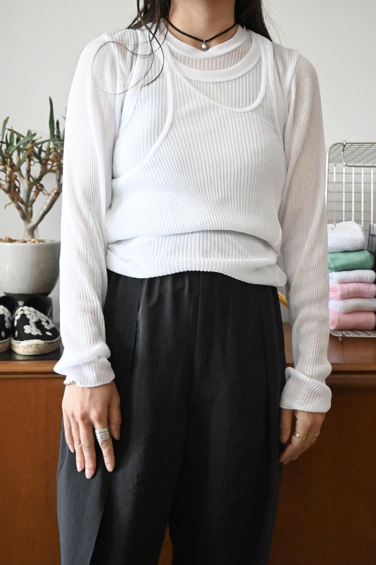 肌離れの良いドライタッチな透け感のあるテレコ素材は、