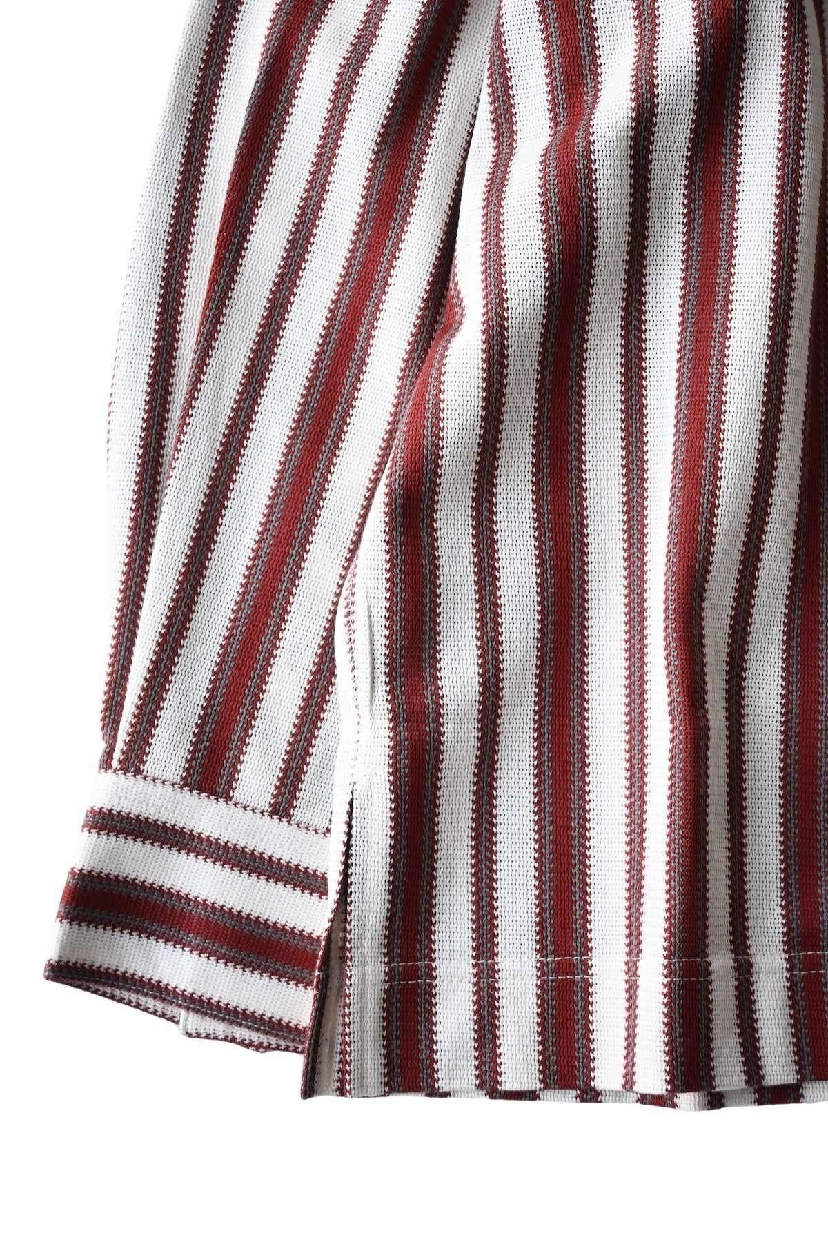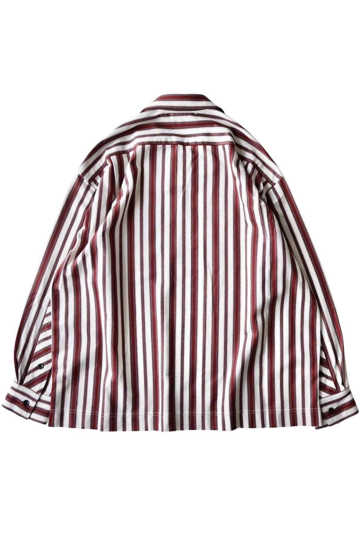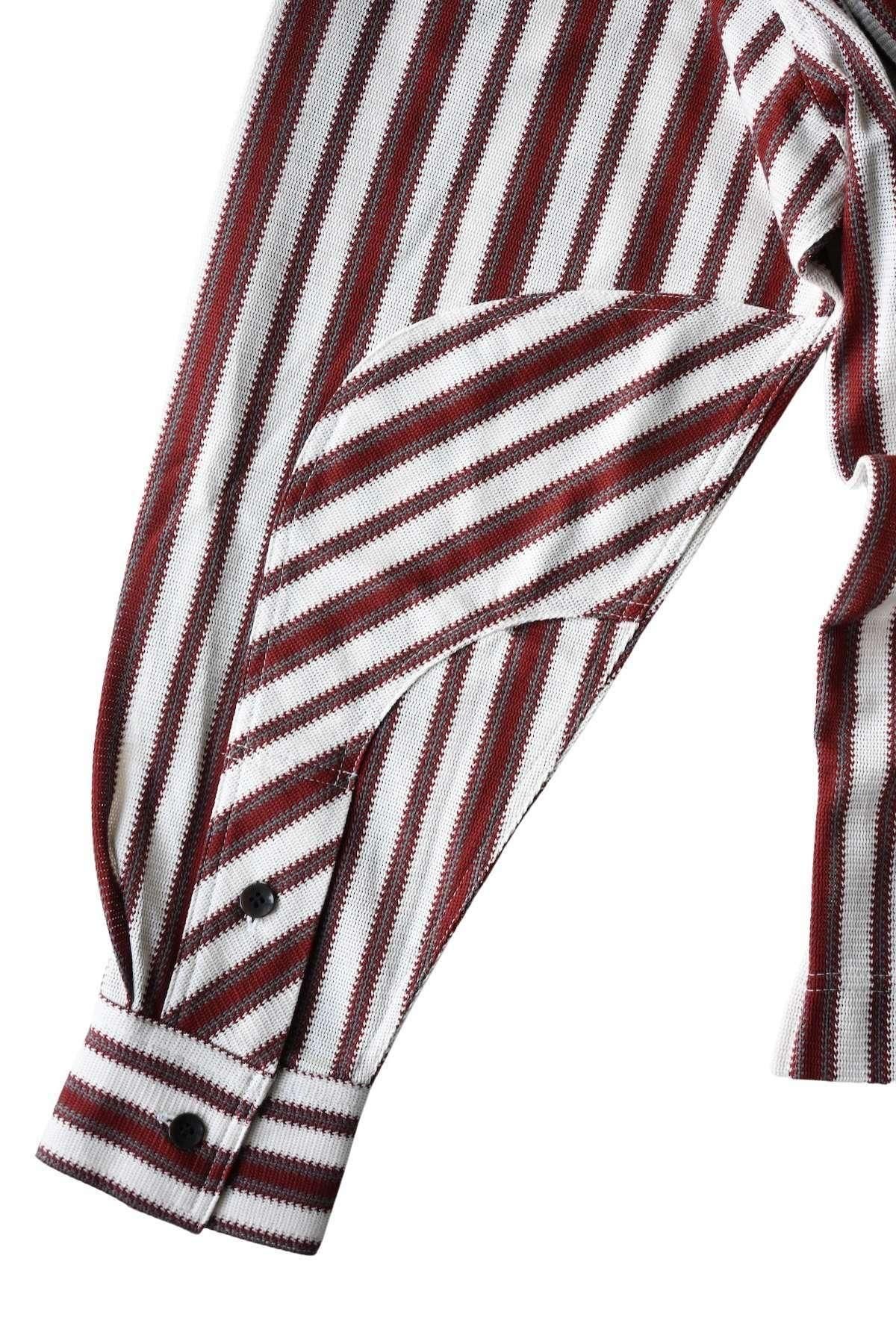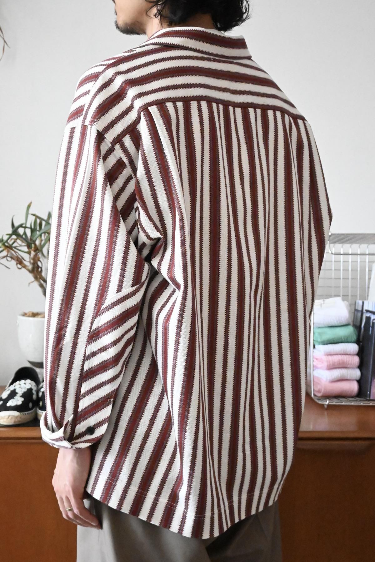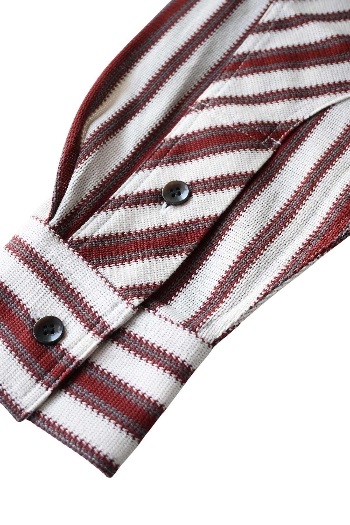 オリジナルマルチストライプのオープンカラーシャツ。