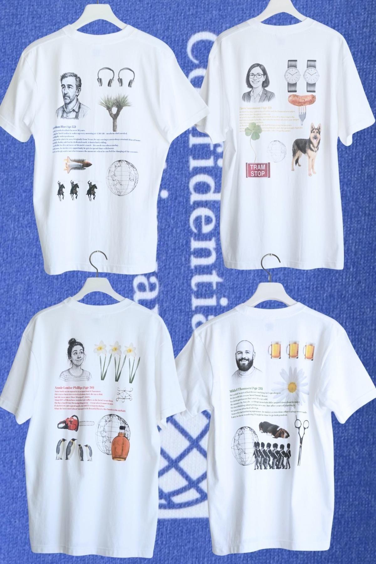 それに搭乗する架空の乗客が描かれたTシャツ。