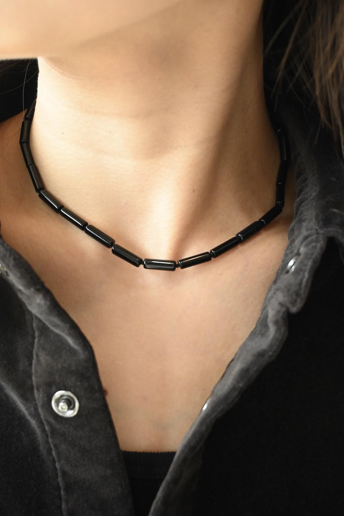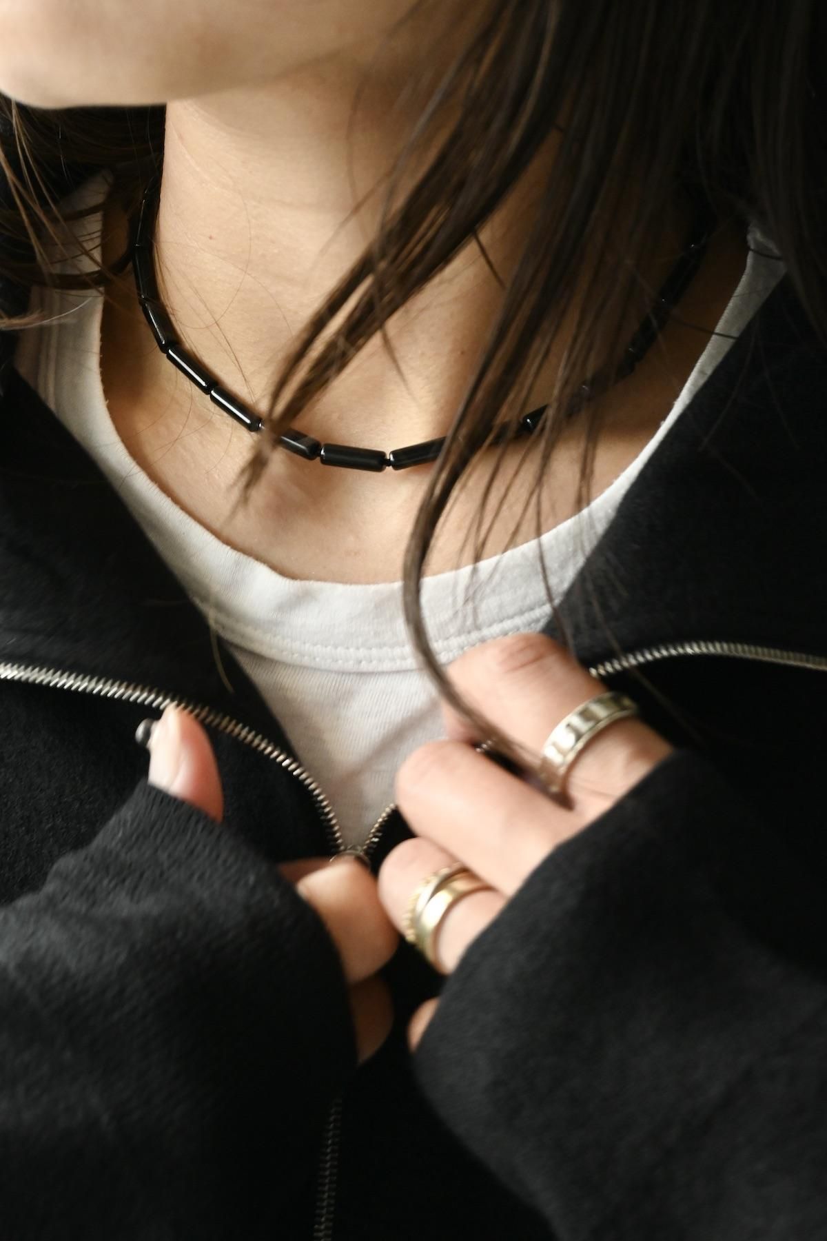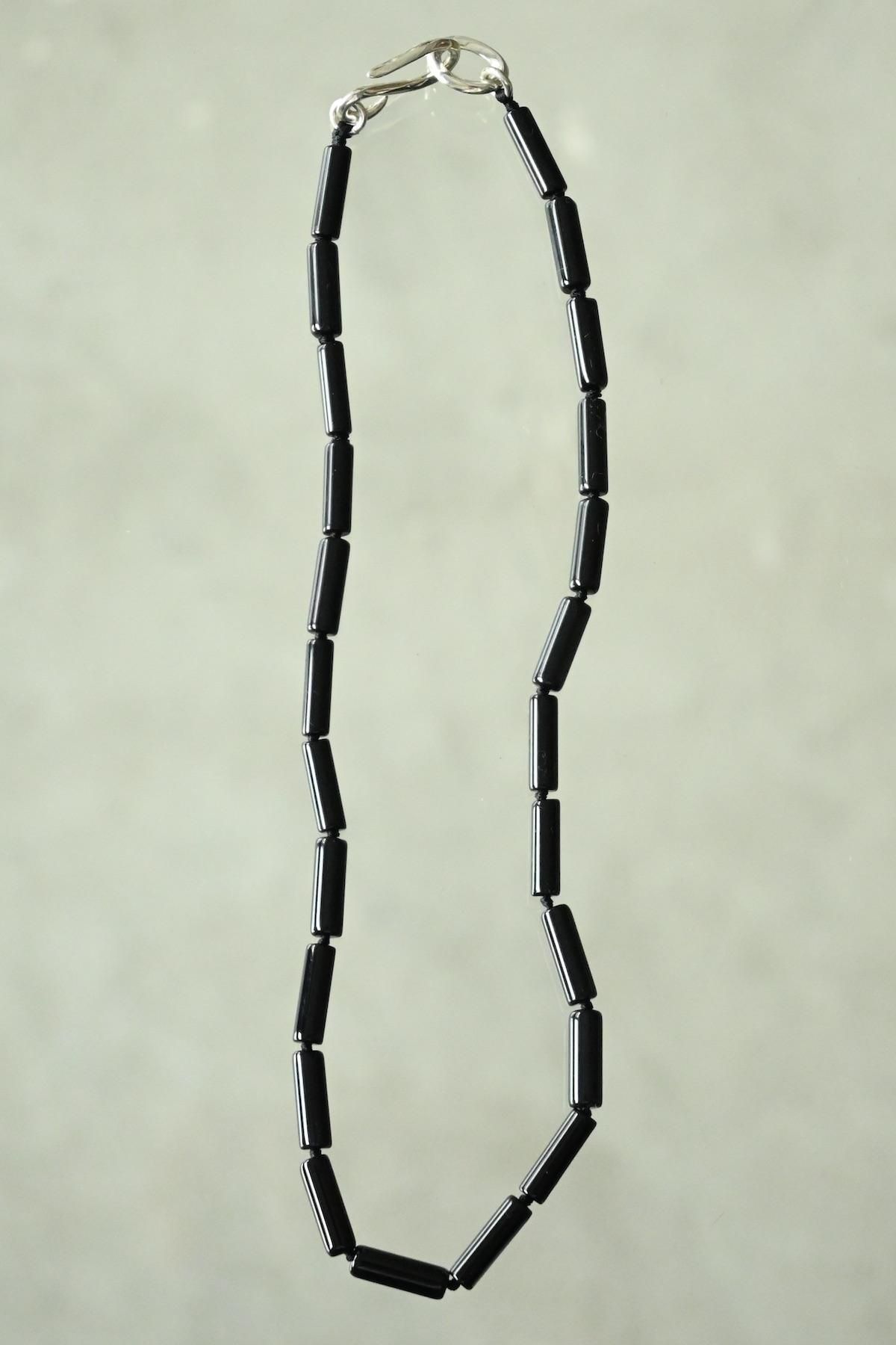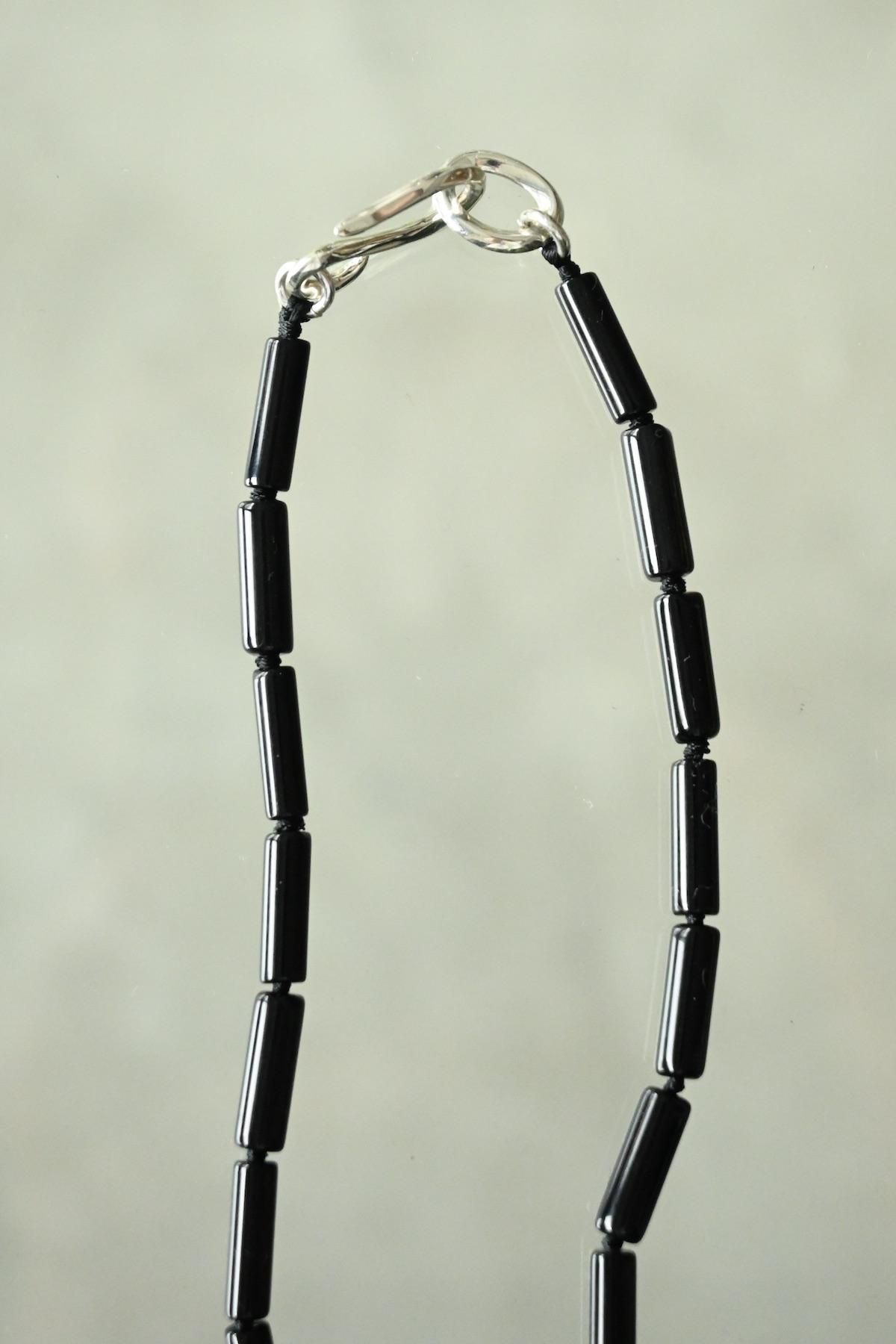 チューブ型のオニキスをオールノットで組み上げたネックレス。