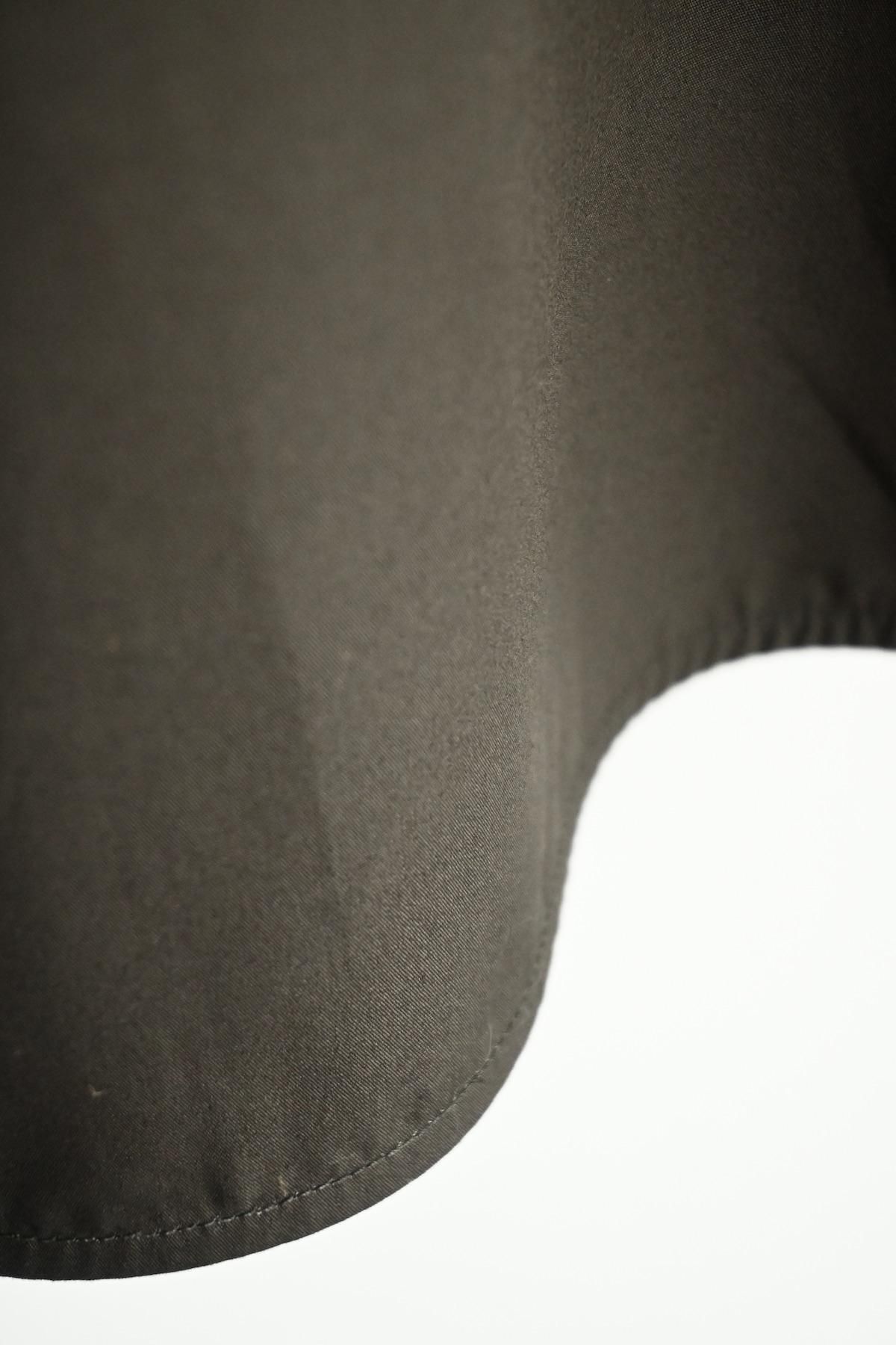 日本の職人と共に作り込むオリジナル素材と老舗メゾンブランドで培った立体裁断の技法を用いて、「人体」と「空気」を意識した新たなフォルムを追求しています。