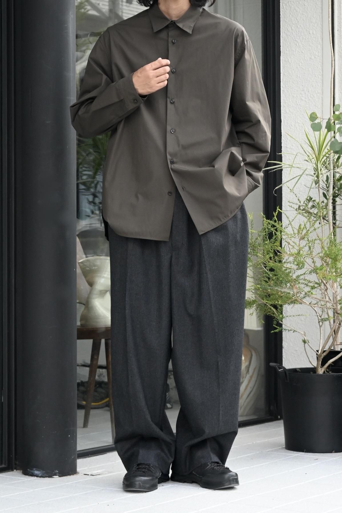 クリア仕上げを施し、よりドレス寄りな表情のシャツをタフに着てほしい