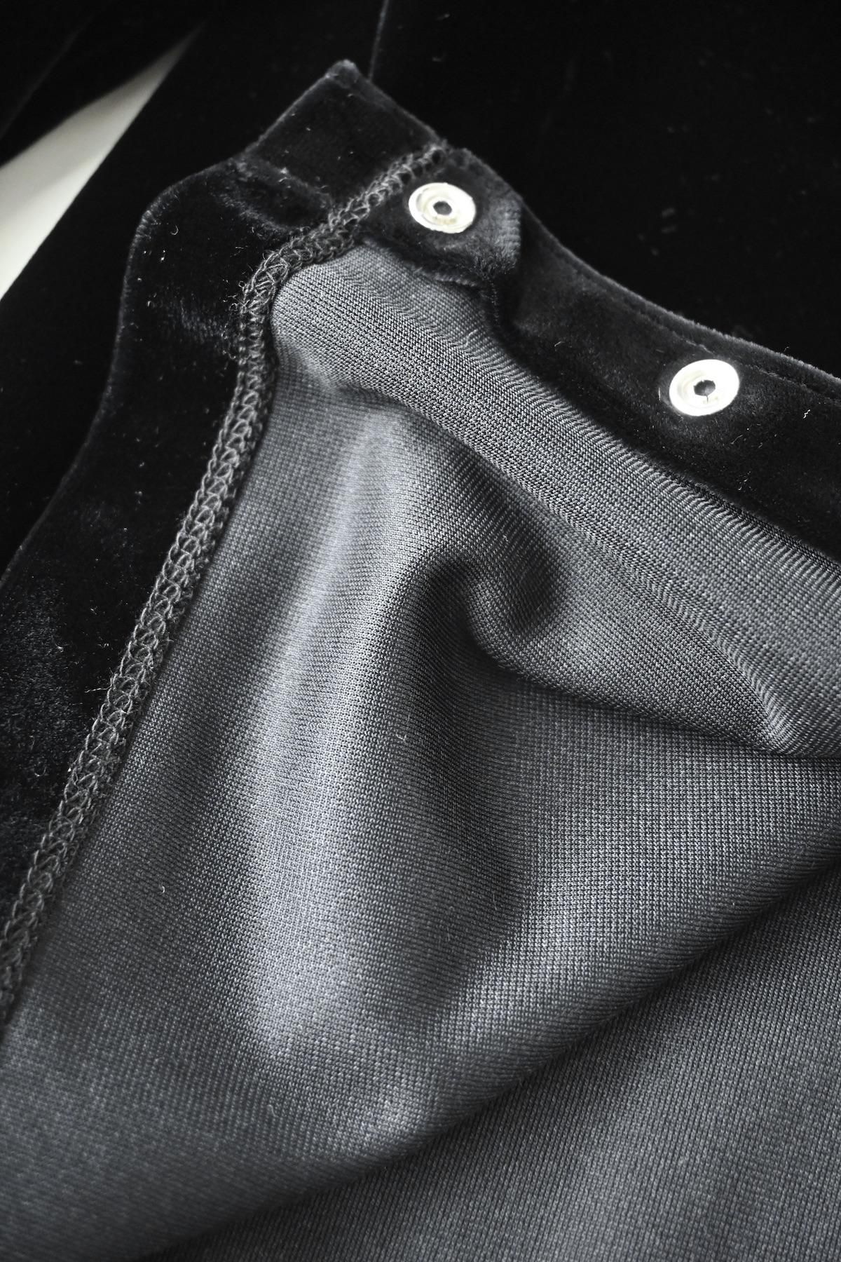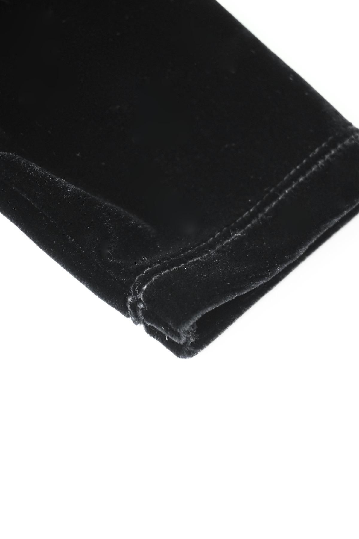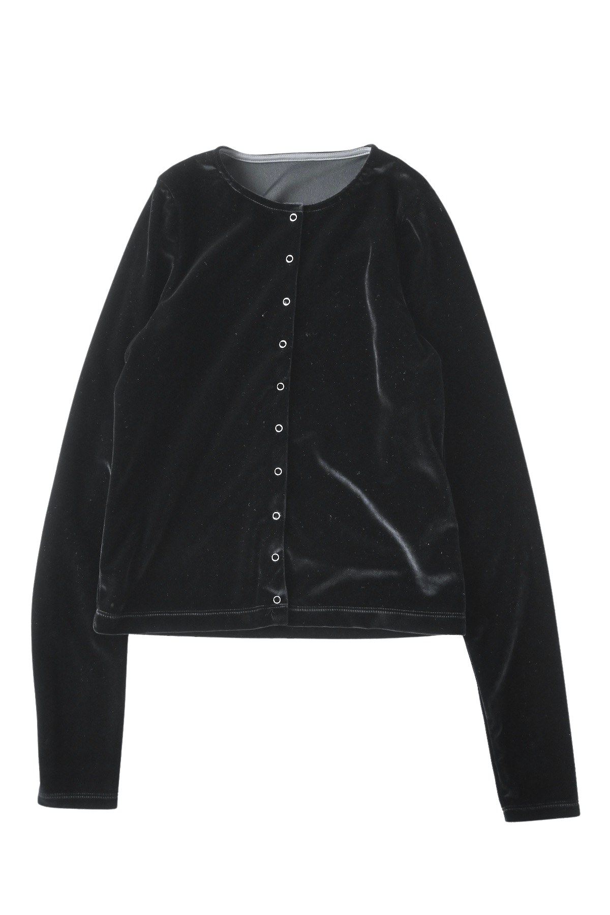 伸縮性のあるベルベット素材のカーディガン。