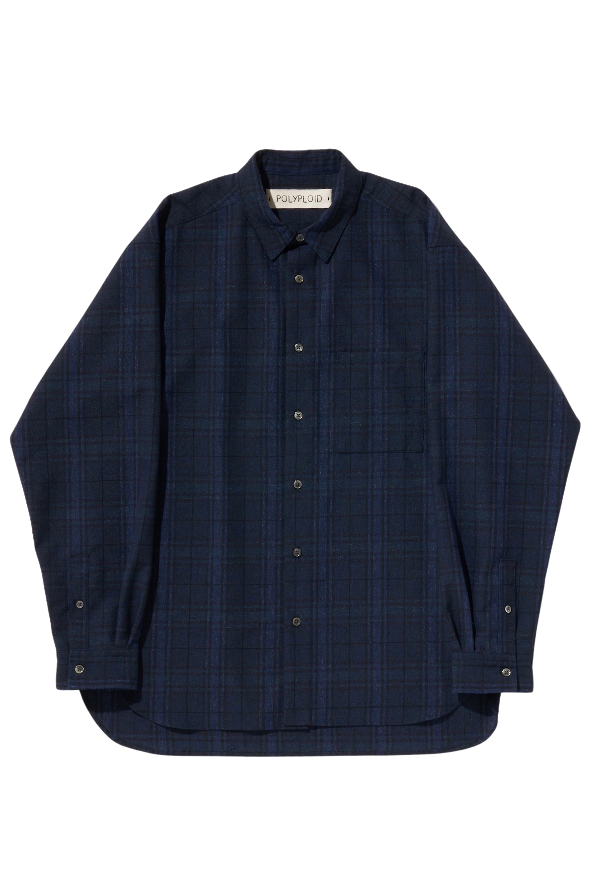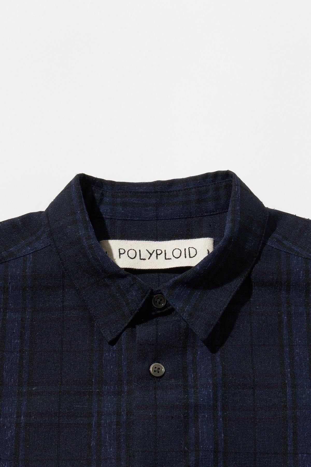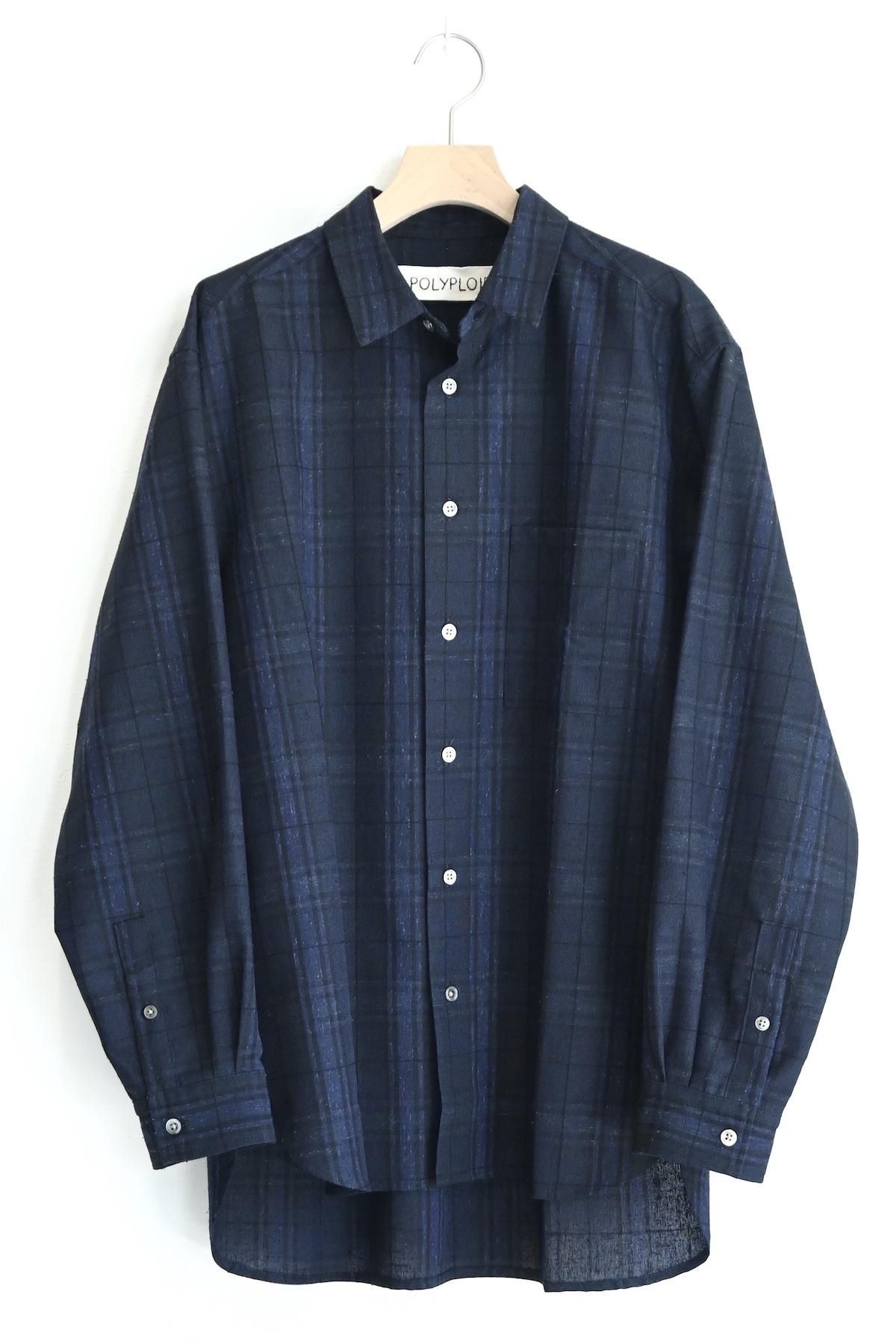 強撚のレーヨンポリエステルに、シルクのネップが入っており、少し凹凸のあるドビー織りの生地が特徴のシャツ。