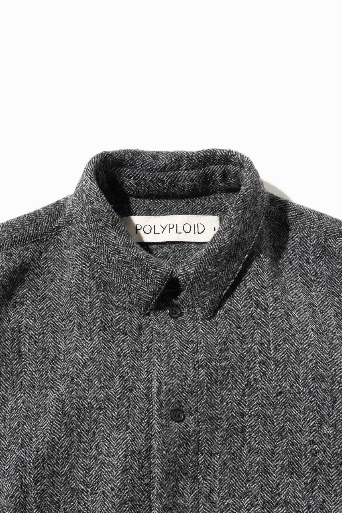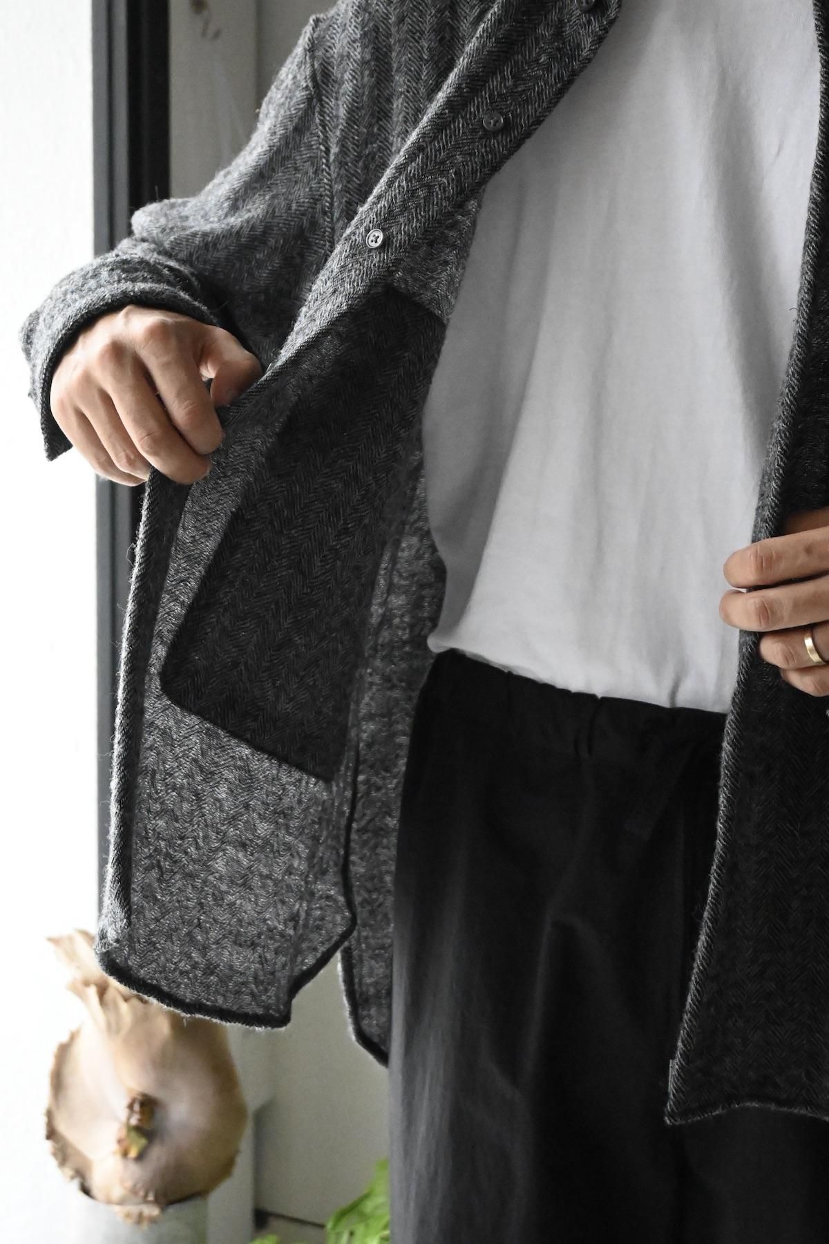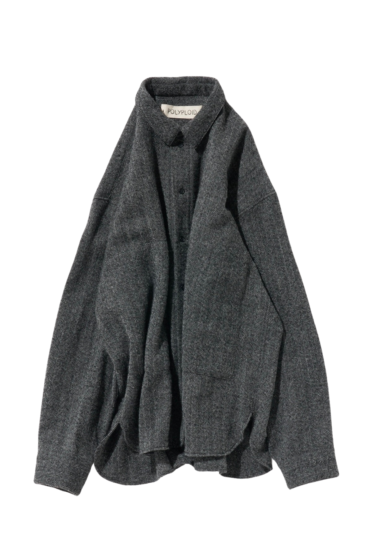 ヘリンボーン柄のウールガーゼ生地を使用したシャツ。