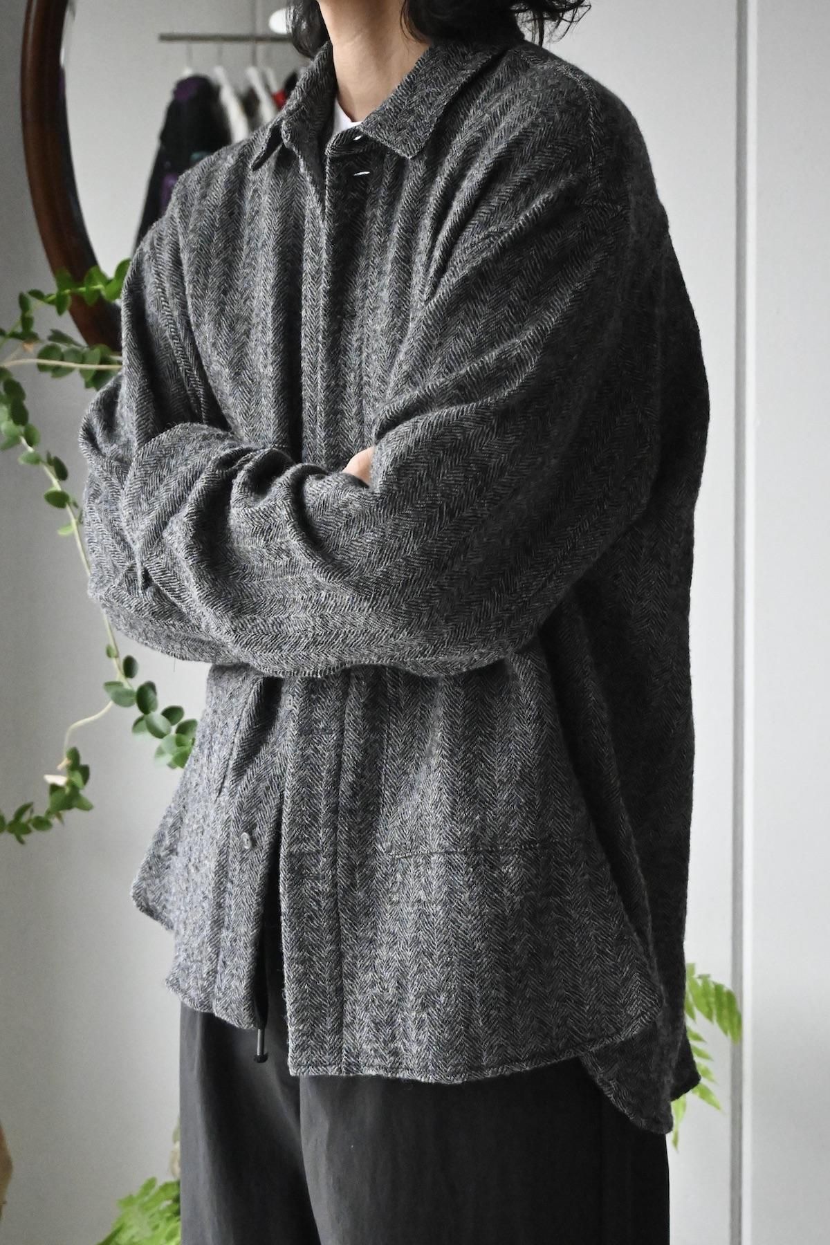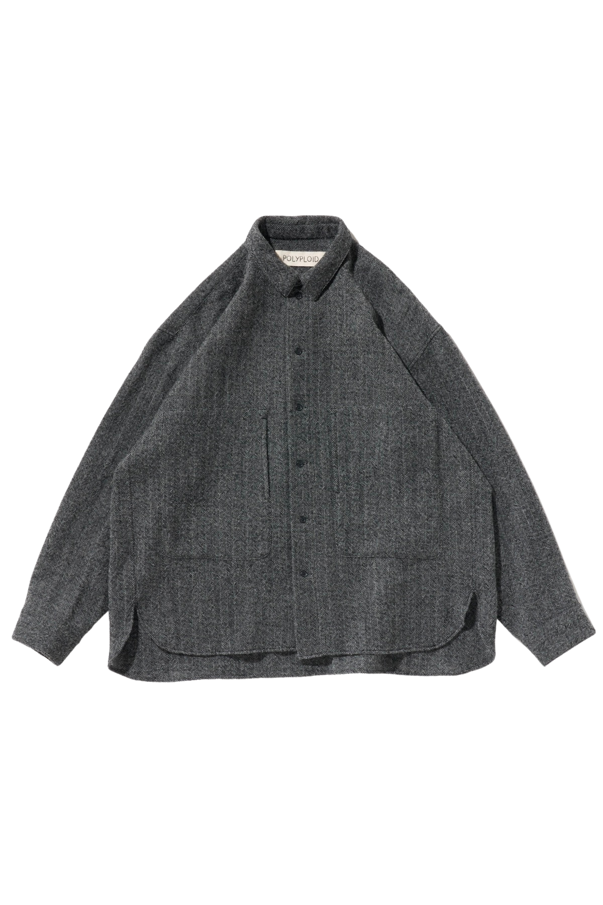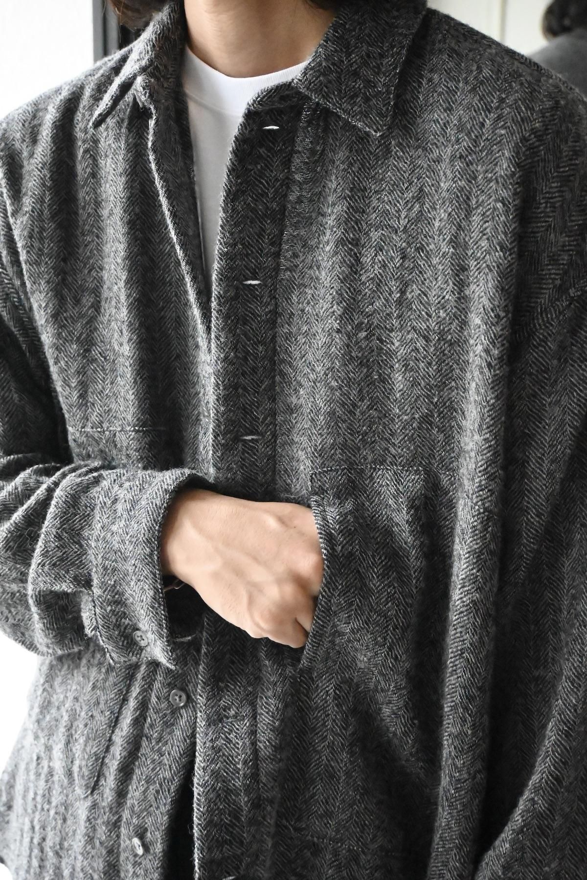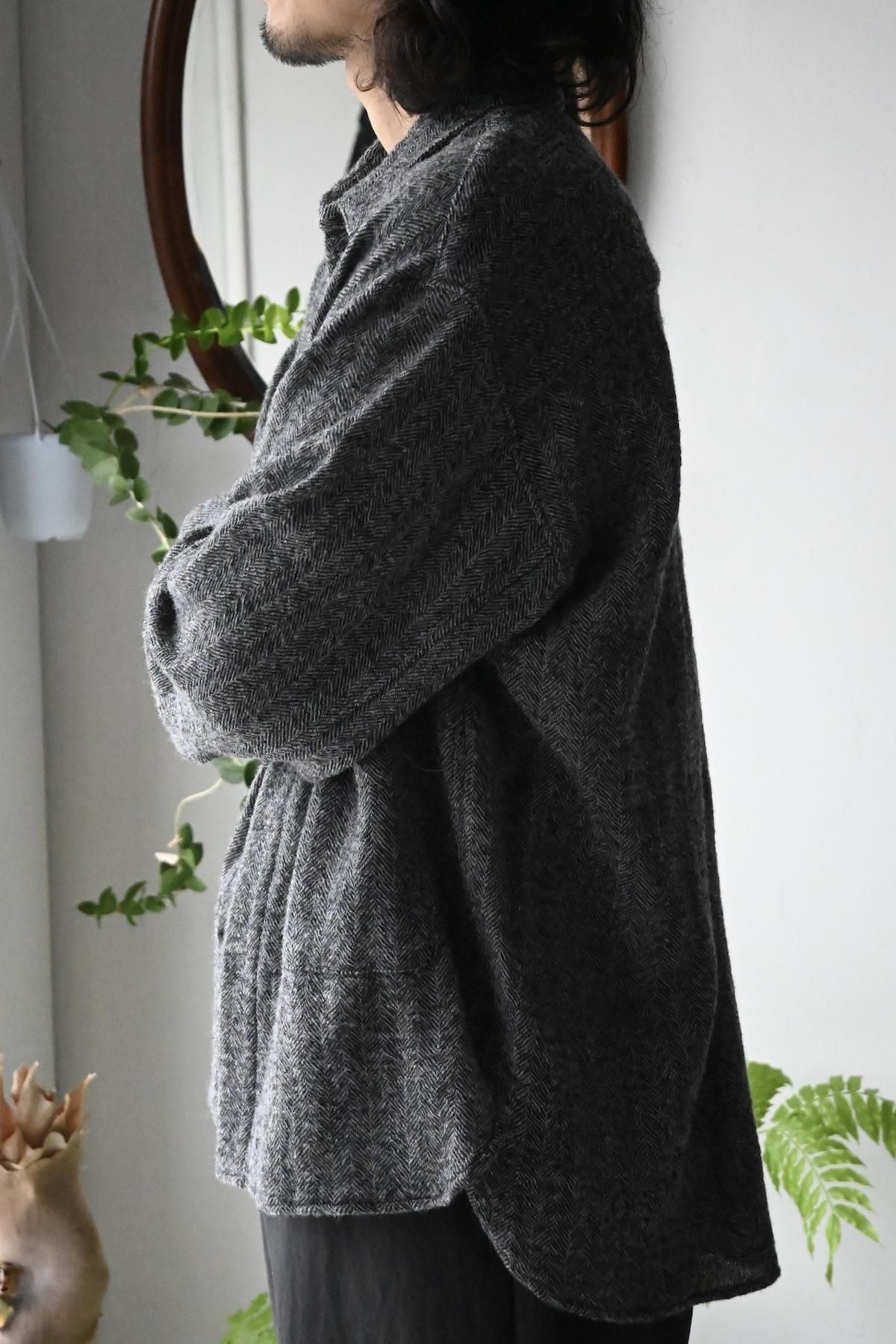 ヘリンボーン柄のウールガーゼ生地を使用したシャツ。