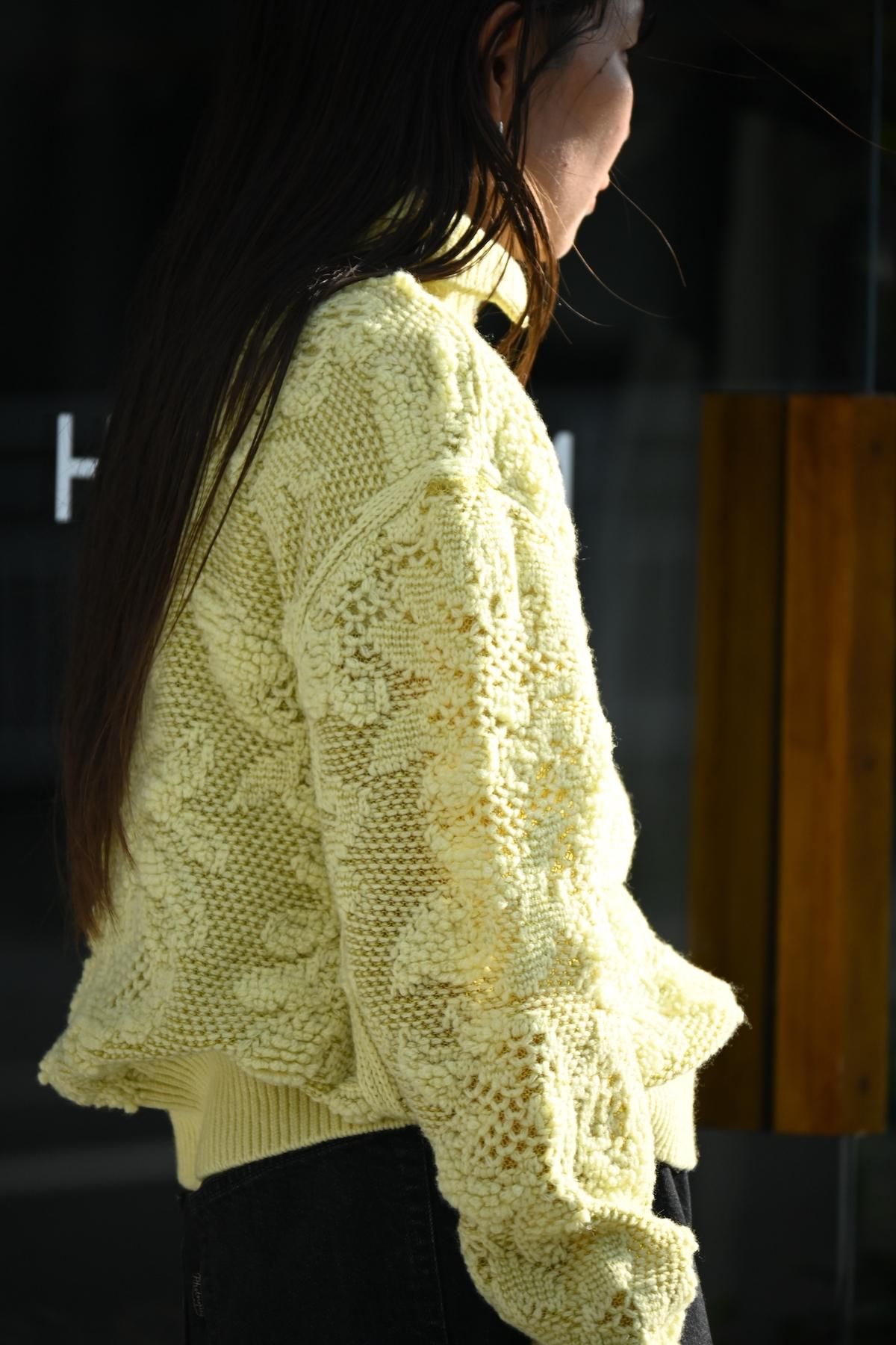 ジャカードでレースの柄を表現したPHOTOCOPIEUらしいセーター。