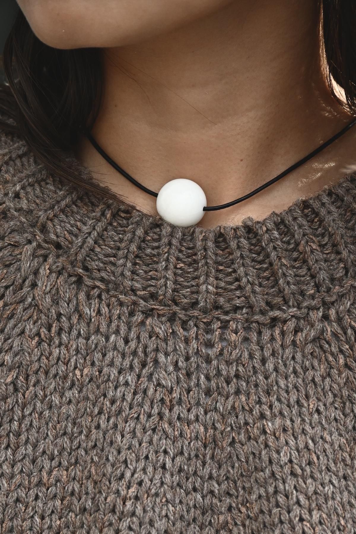 求心編みで仕立てたプルオーバーは着心地の良さと軽さが特徴。