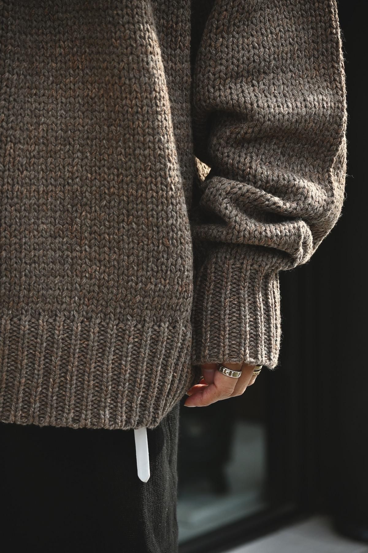 手編みでしか表現できない独特なムラや温もりのある表情がポイント。