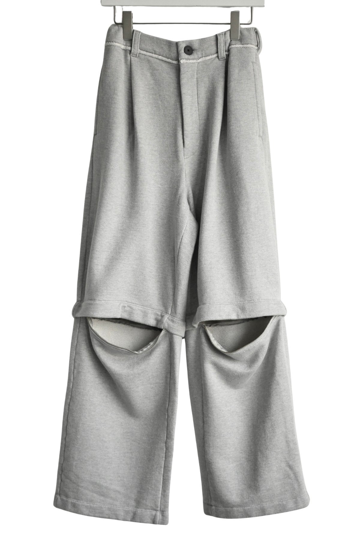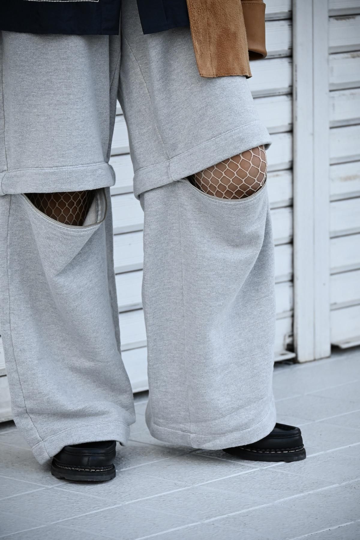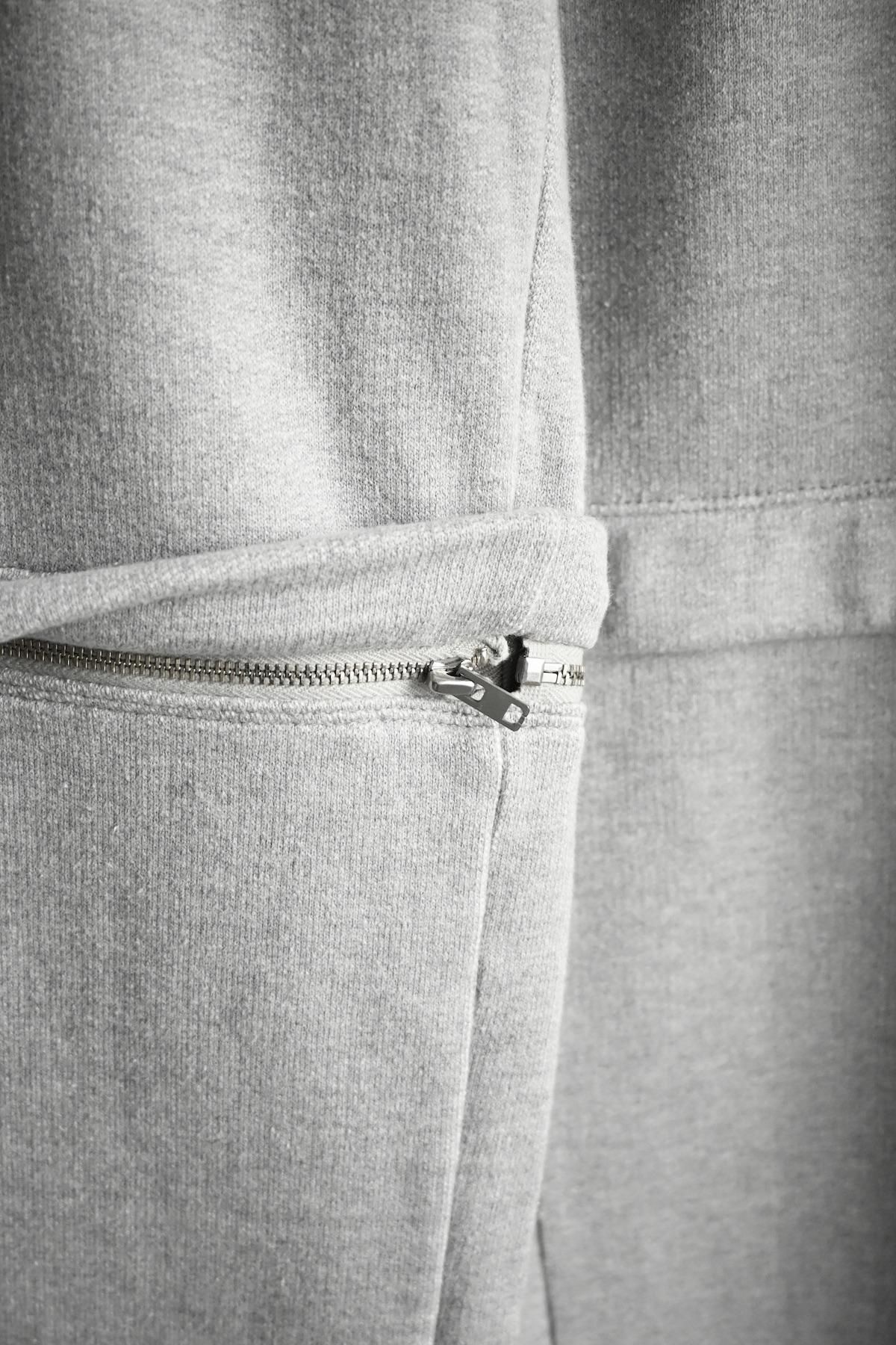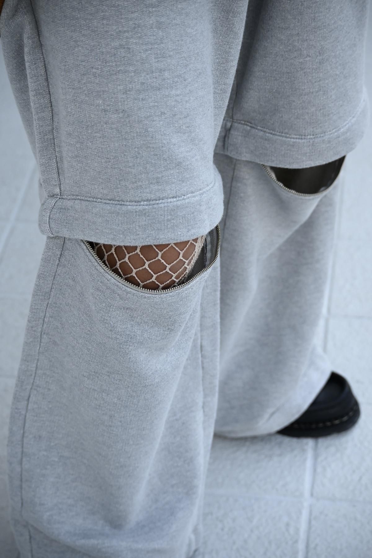 膝下の部分がZIPで取り外しができるスウェットパンツ。