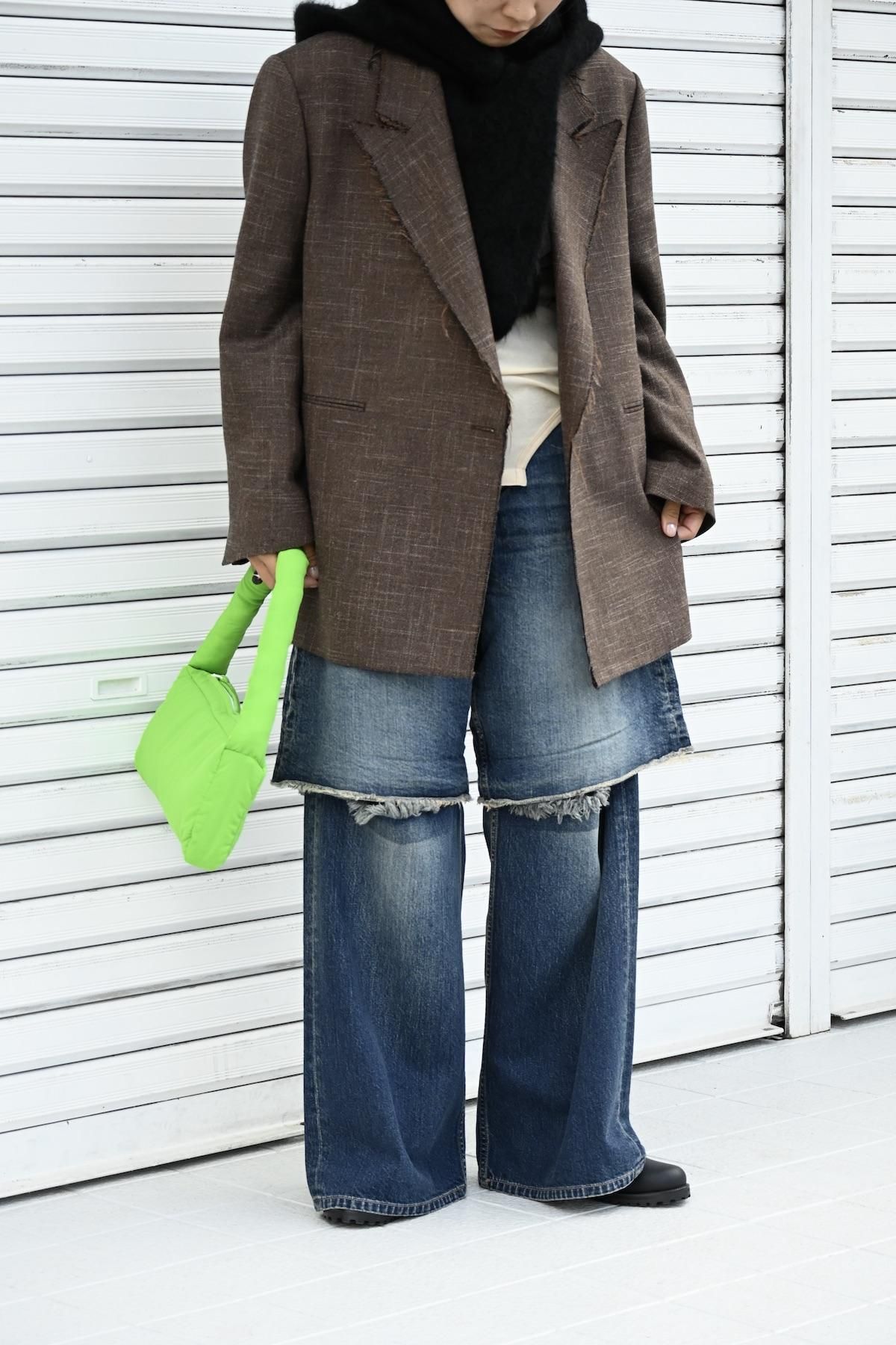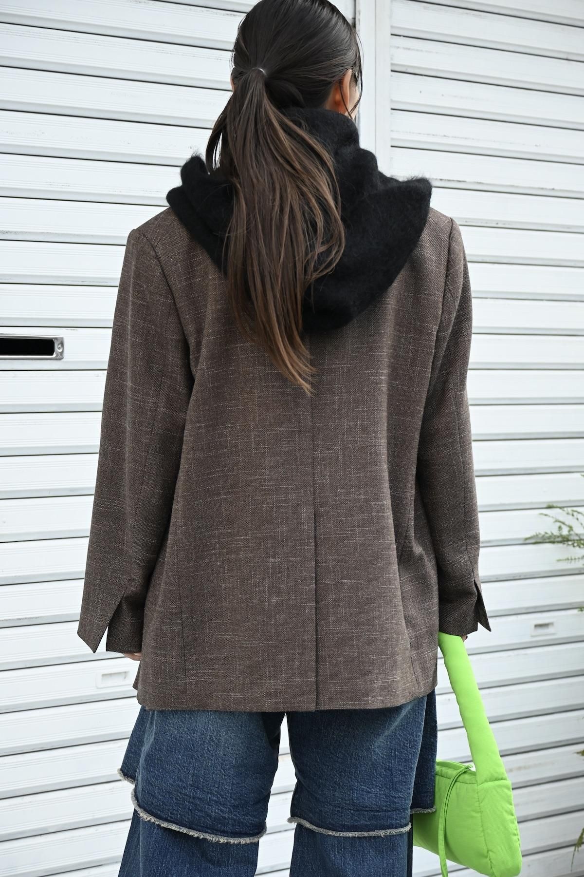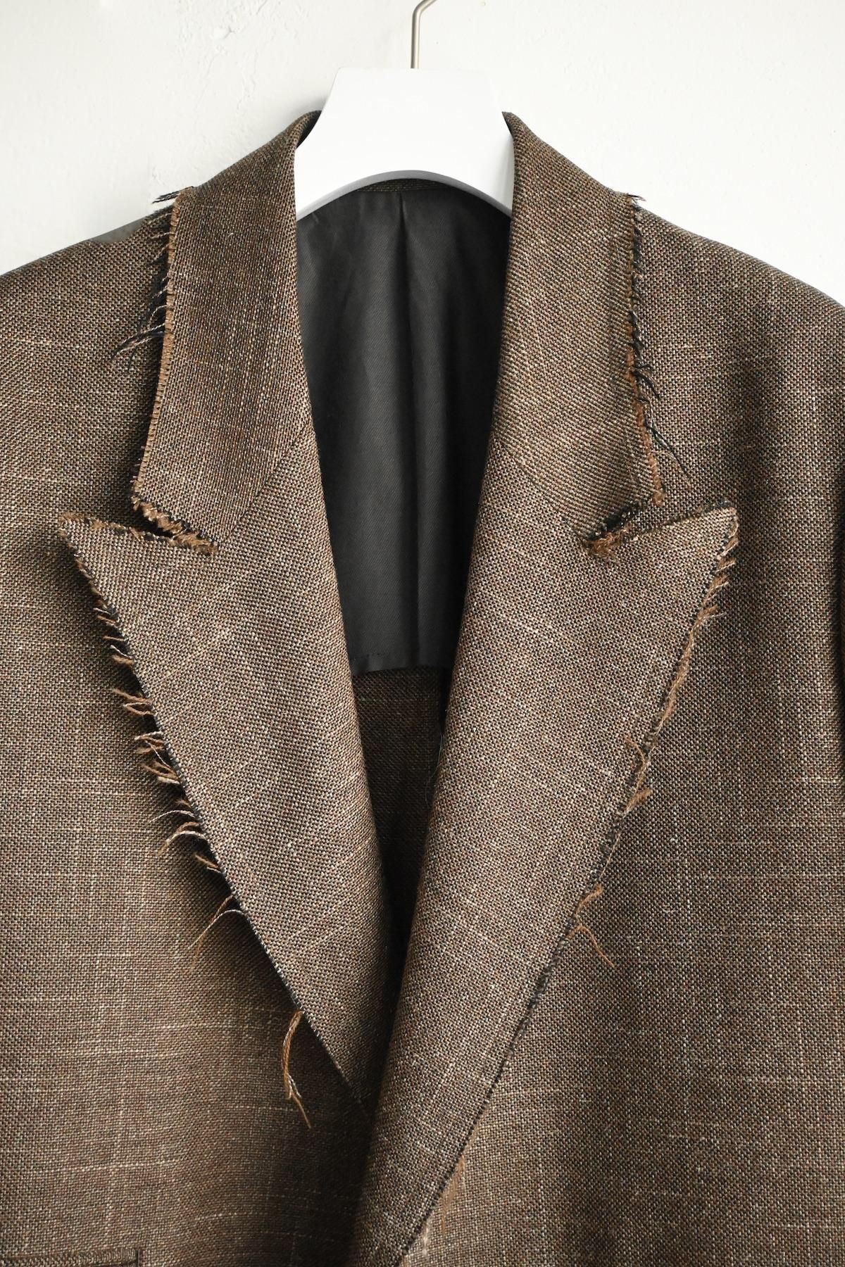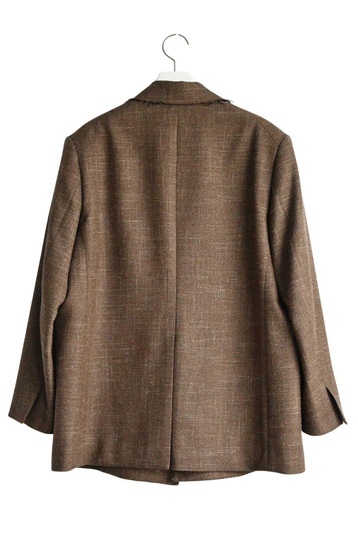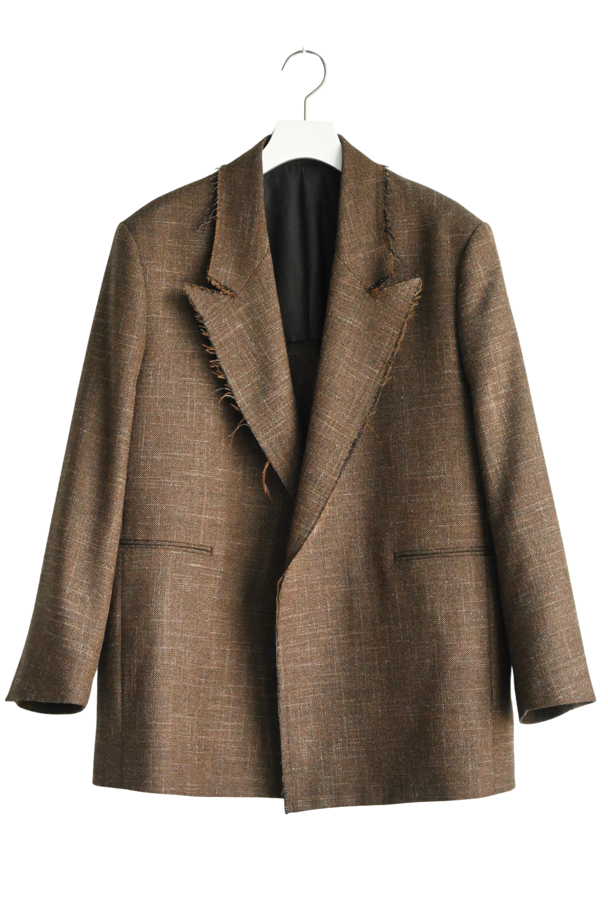 テーラードだけど堅苦しくなく、襟が切りっぱなしの所もポイント。