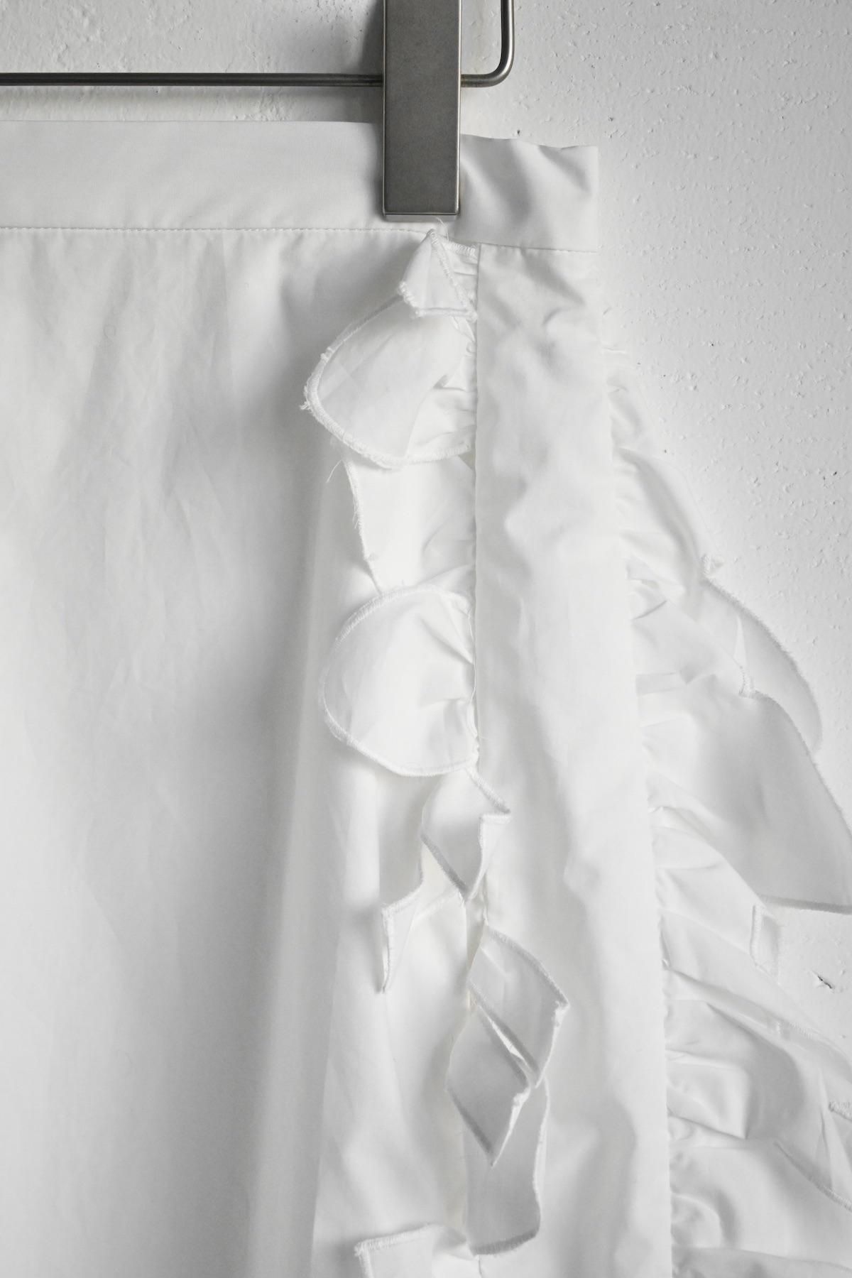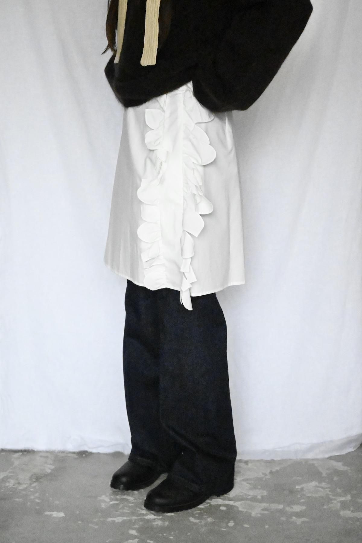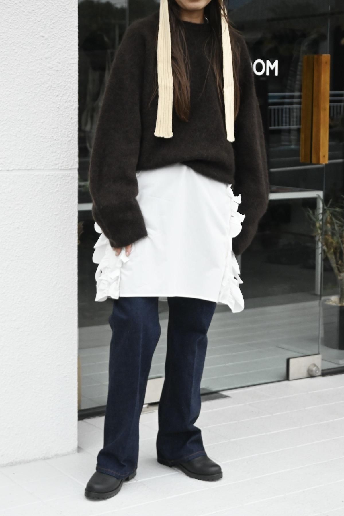 両サイドにラッフルレースを施したややハリ感のあるスカート。