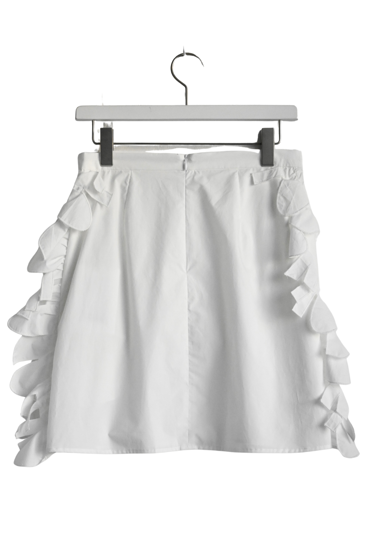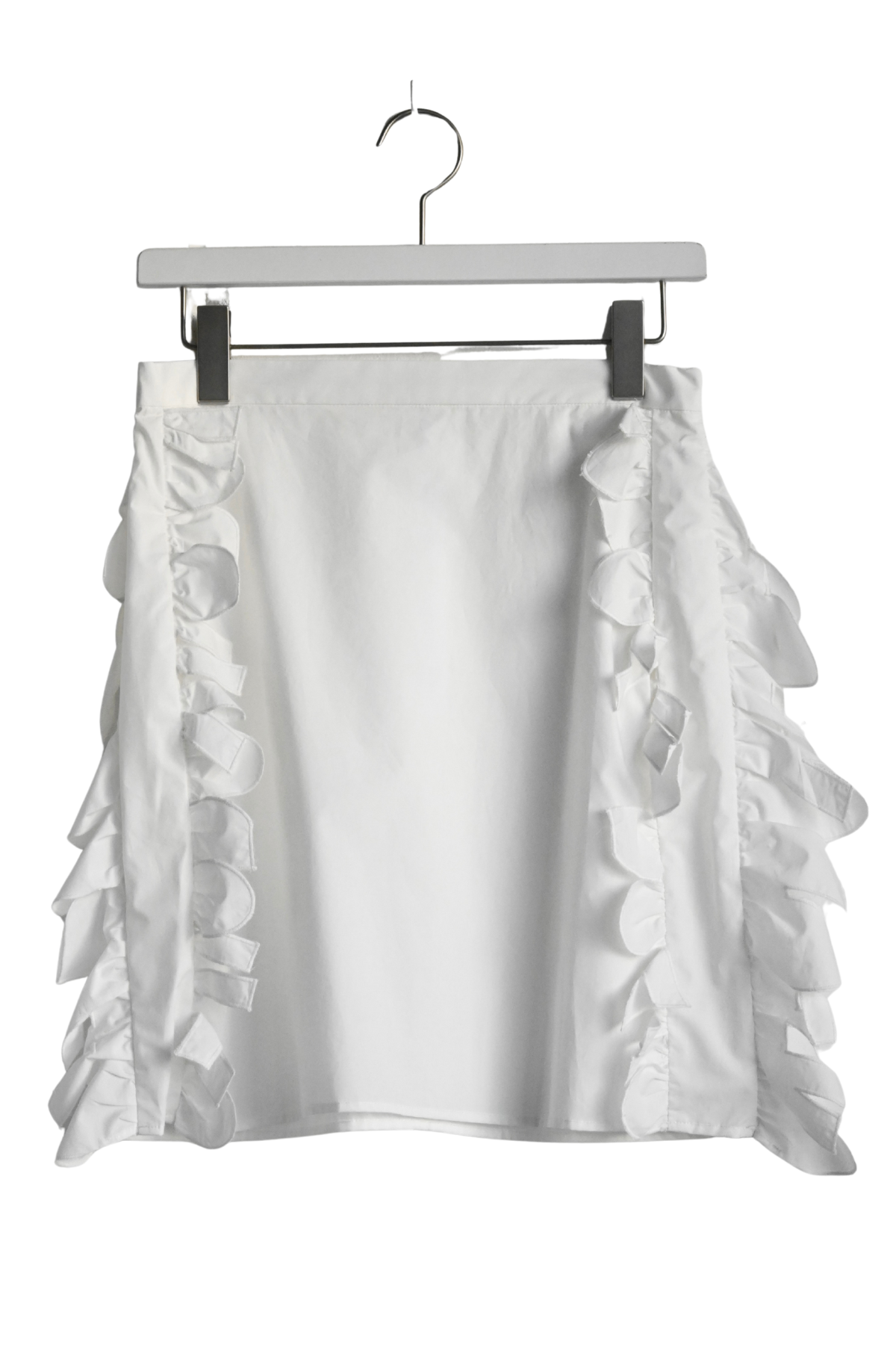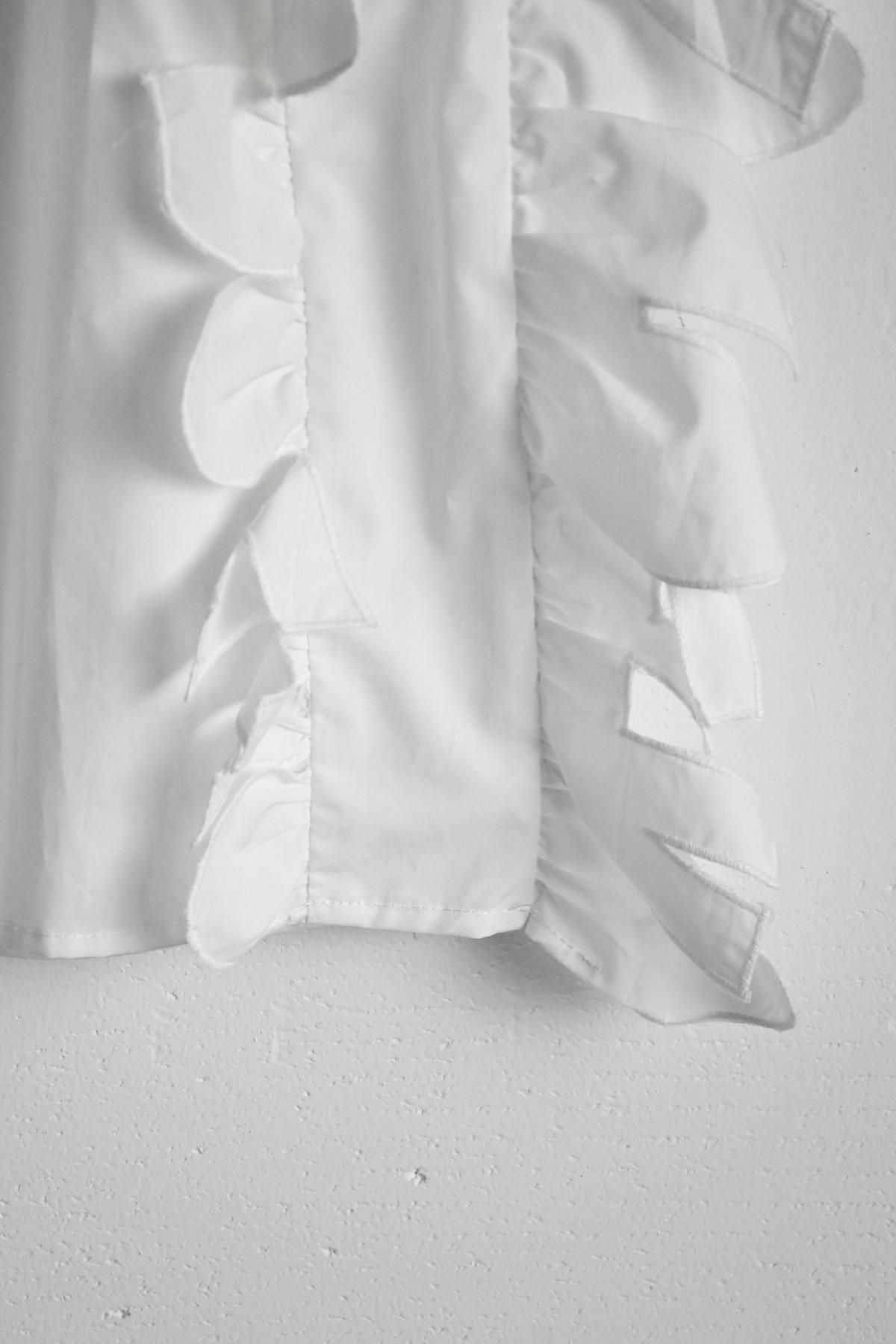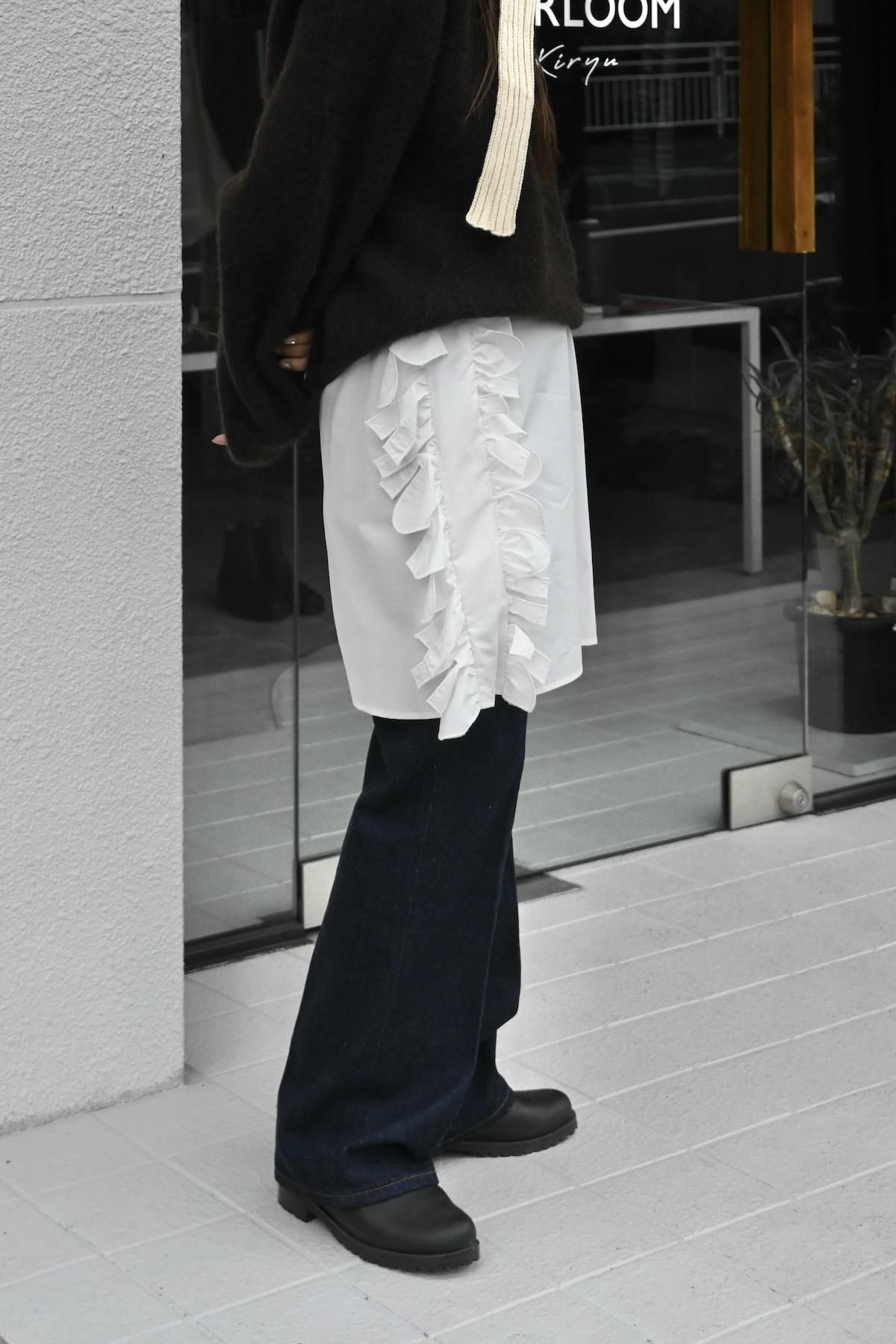 両サイドにラッフルレースを施したややハリ感のあるスカート。