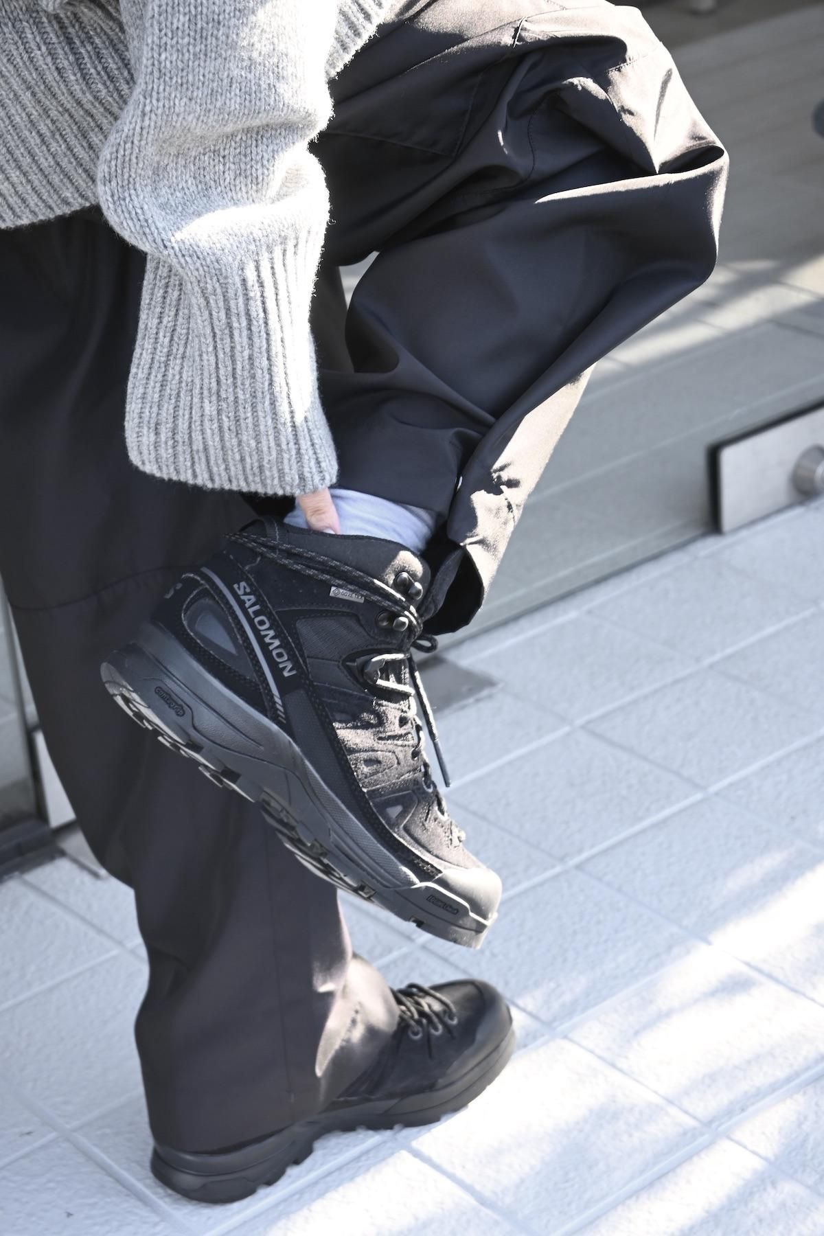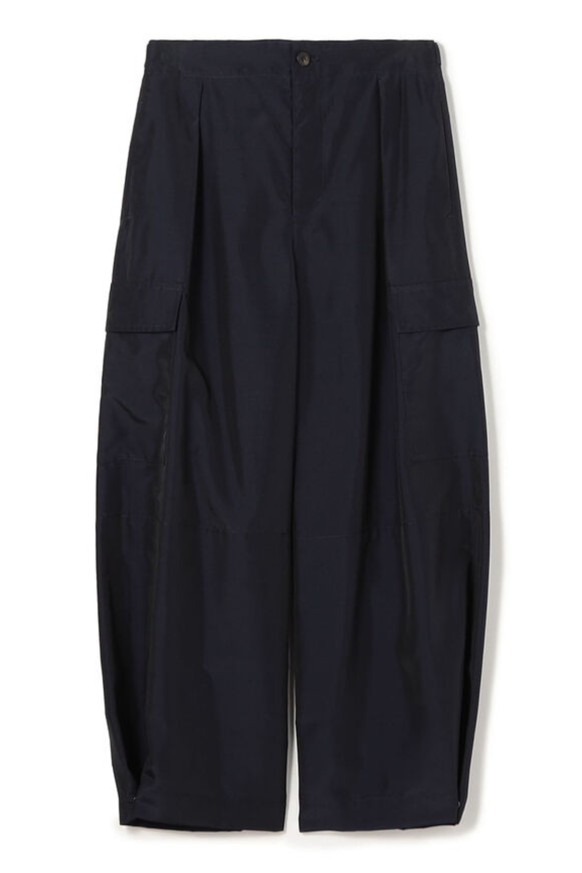 光沢感とハリのある素材感が特徴のタフタパンツ。