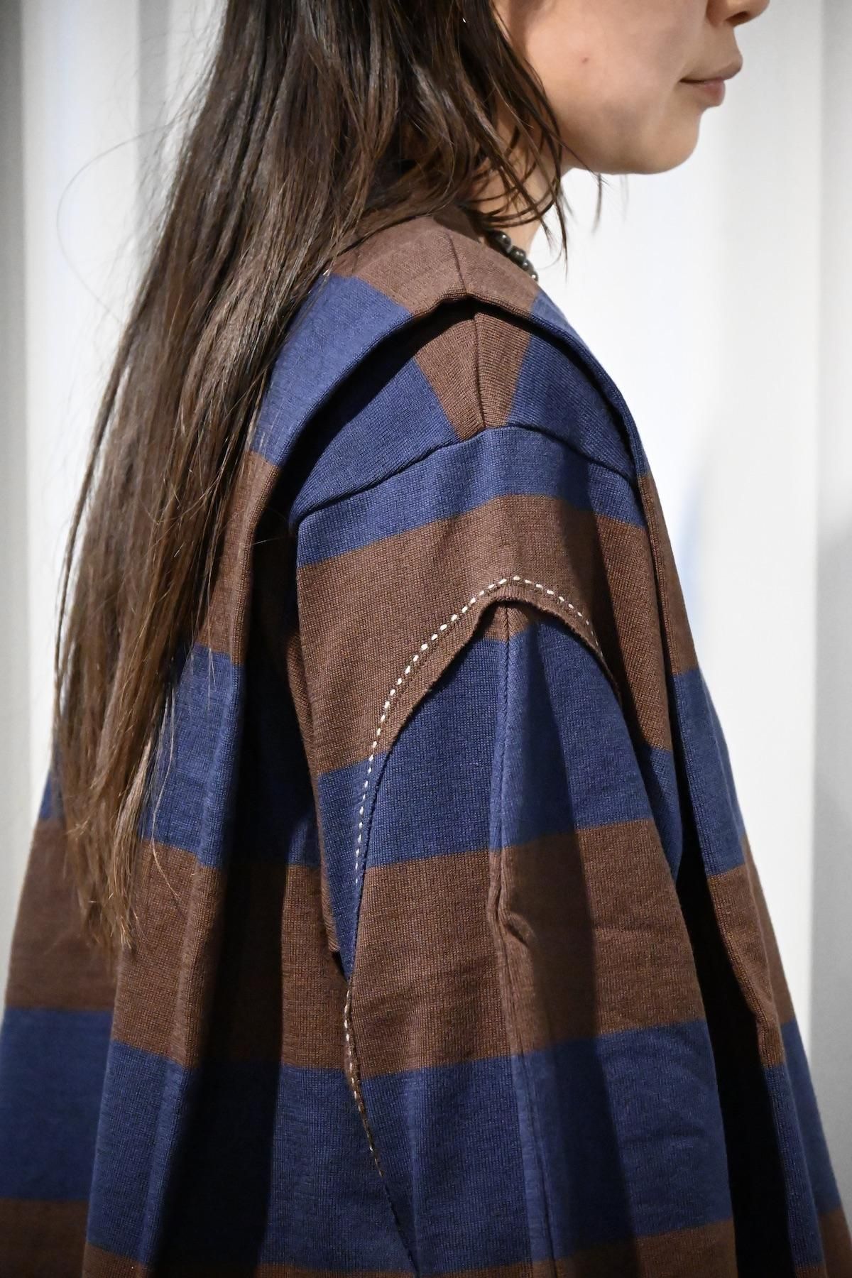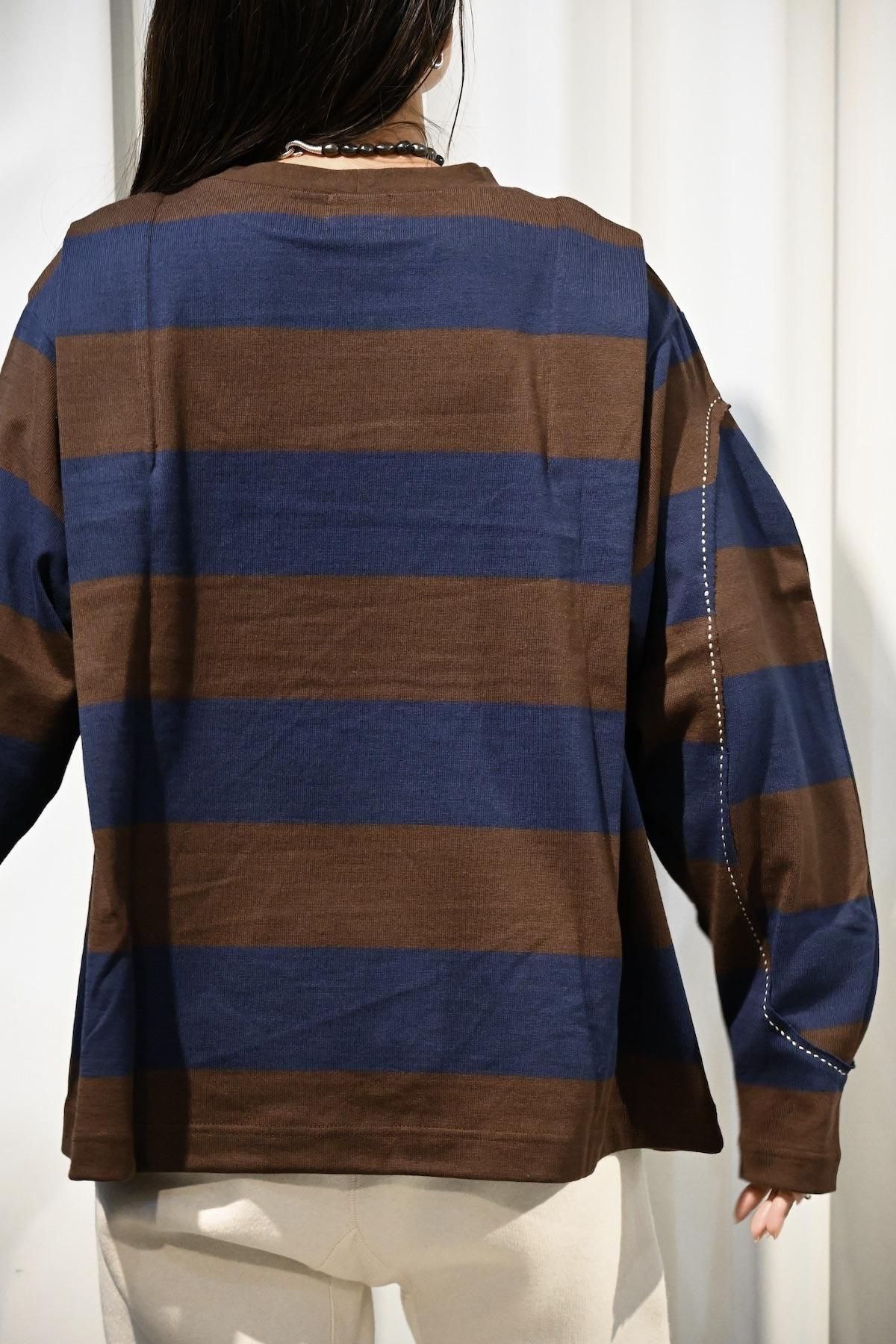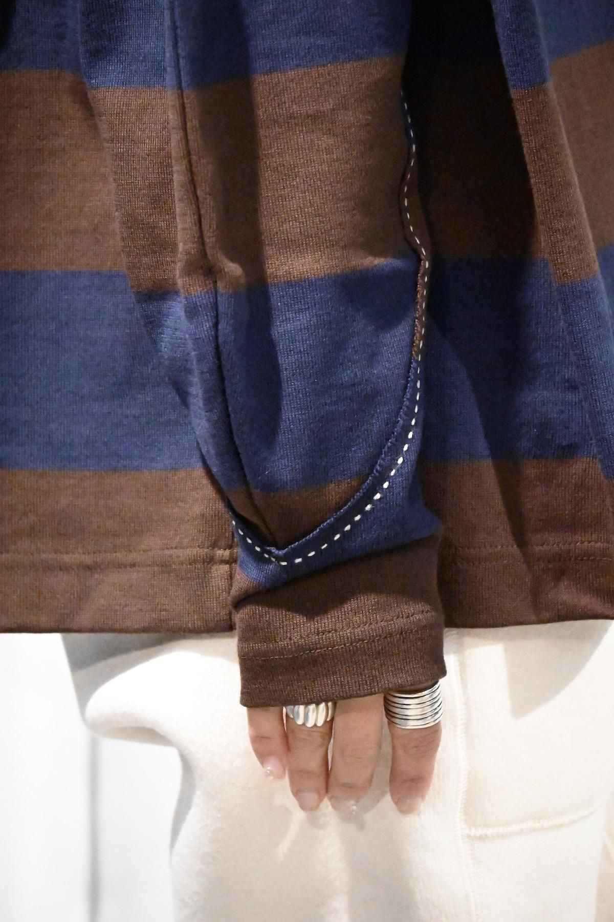jonnlynx / BORDER BIG SLEEVE TEE - NAVY×BROWN